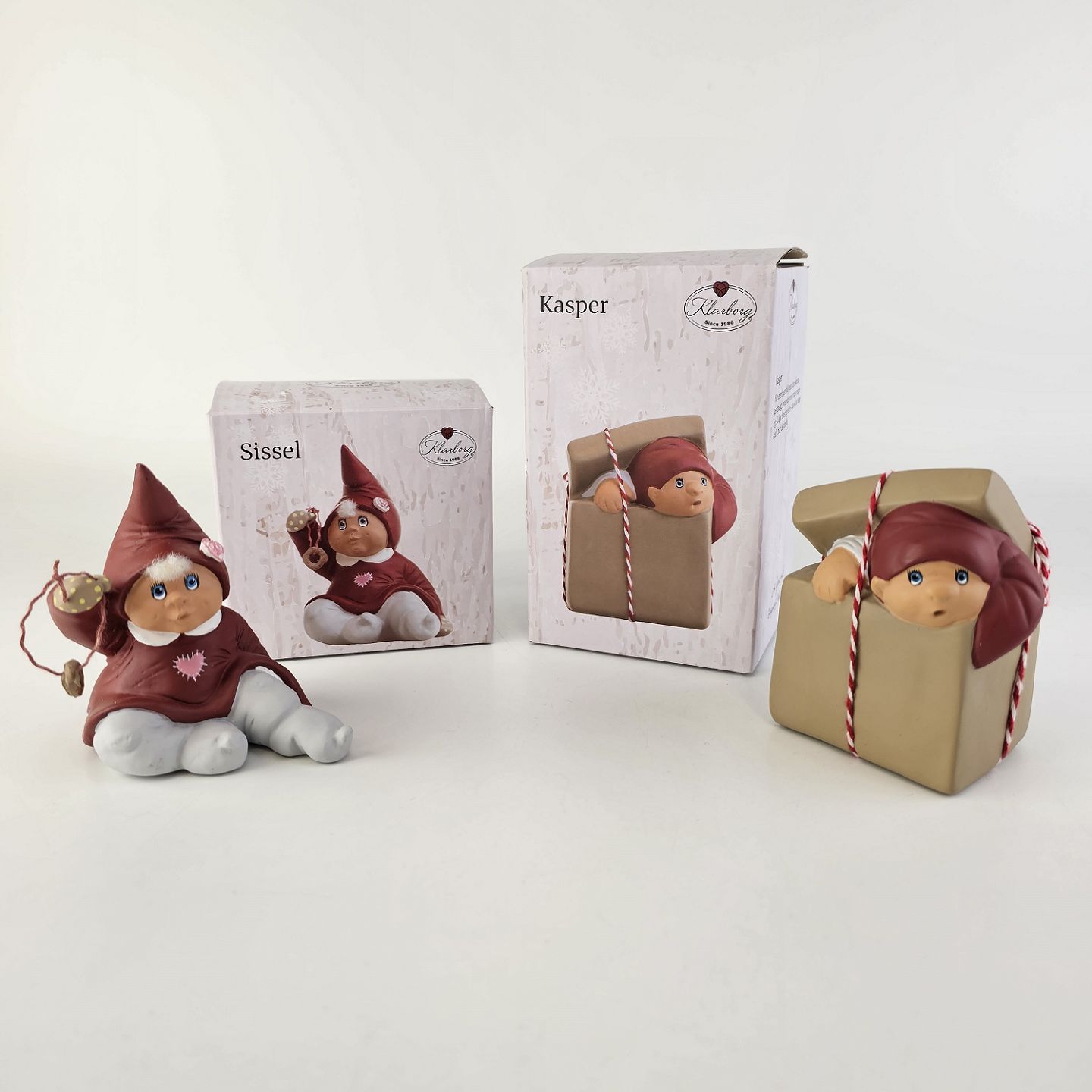Figurer med motiv af nisserne Kasper og SisselFigurene kommer med originale kasser