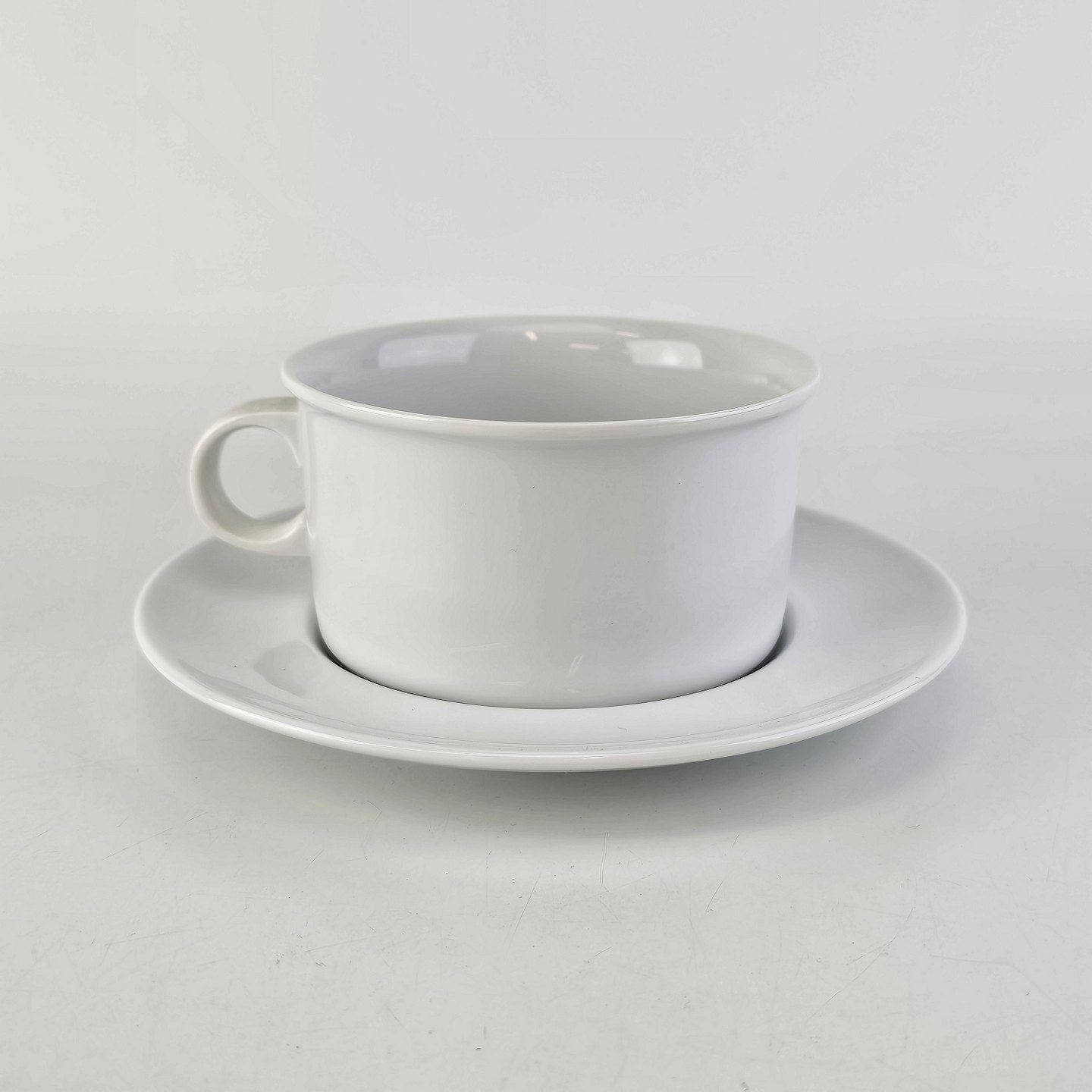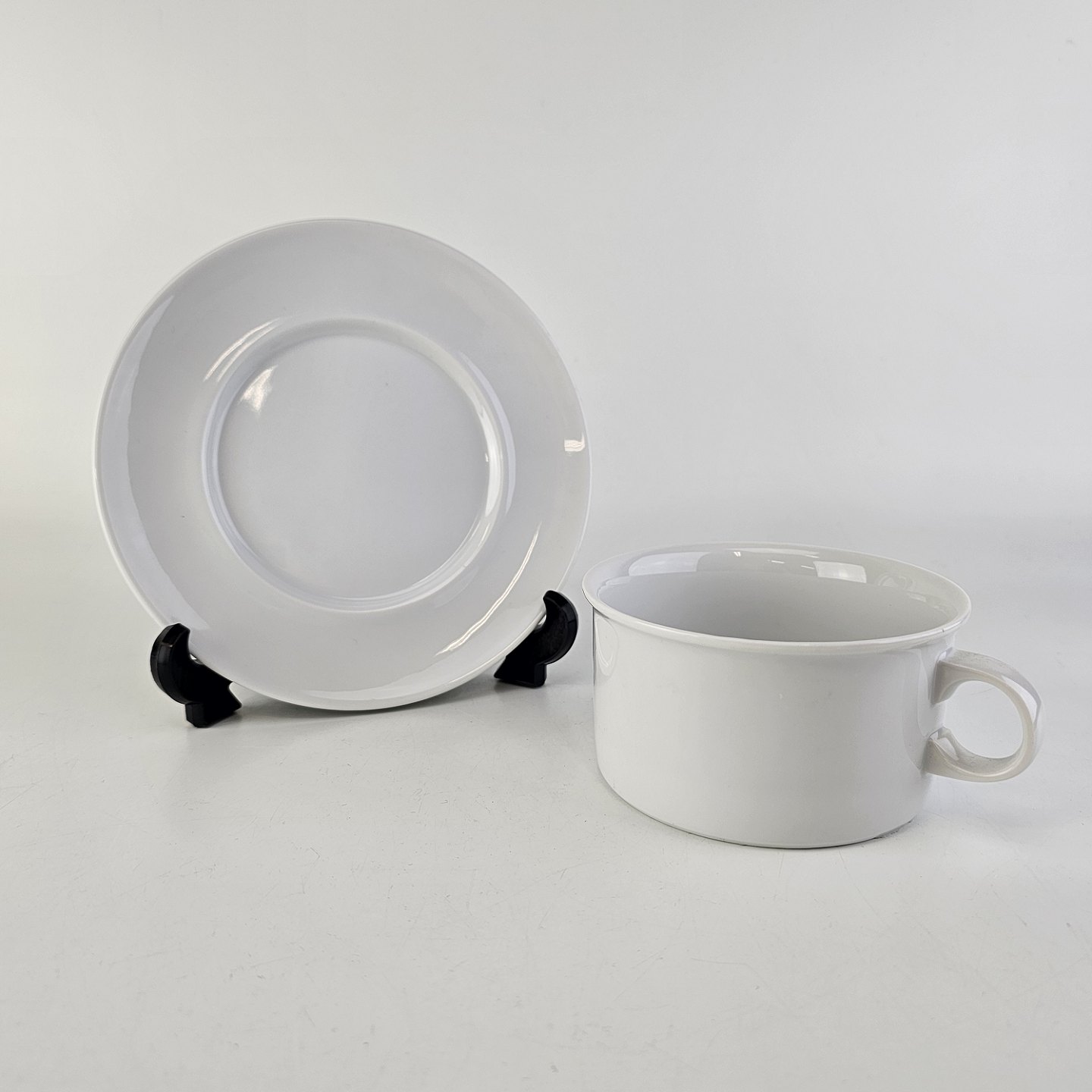 Kaffekop med underkop i glat hvidt porcelæn fra stellet Hvid DominoNr. 081