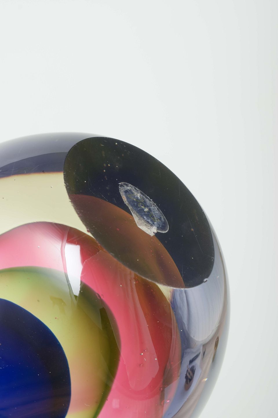 Murano glass from the 1950s and 60s was characterised by technical virtuosity and bold colour combinations. The sommerso (“submerged glass”) technique—perfected by masters such as Seguso, Mandruzzato, and Barbini—produced vibrant layered effects and striking sculptural forms. These works embody the refined modernist expression that made Murano glass internationally renowned.