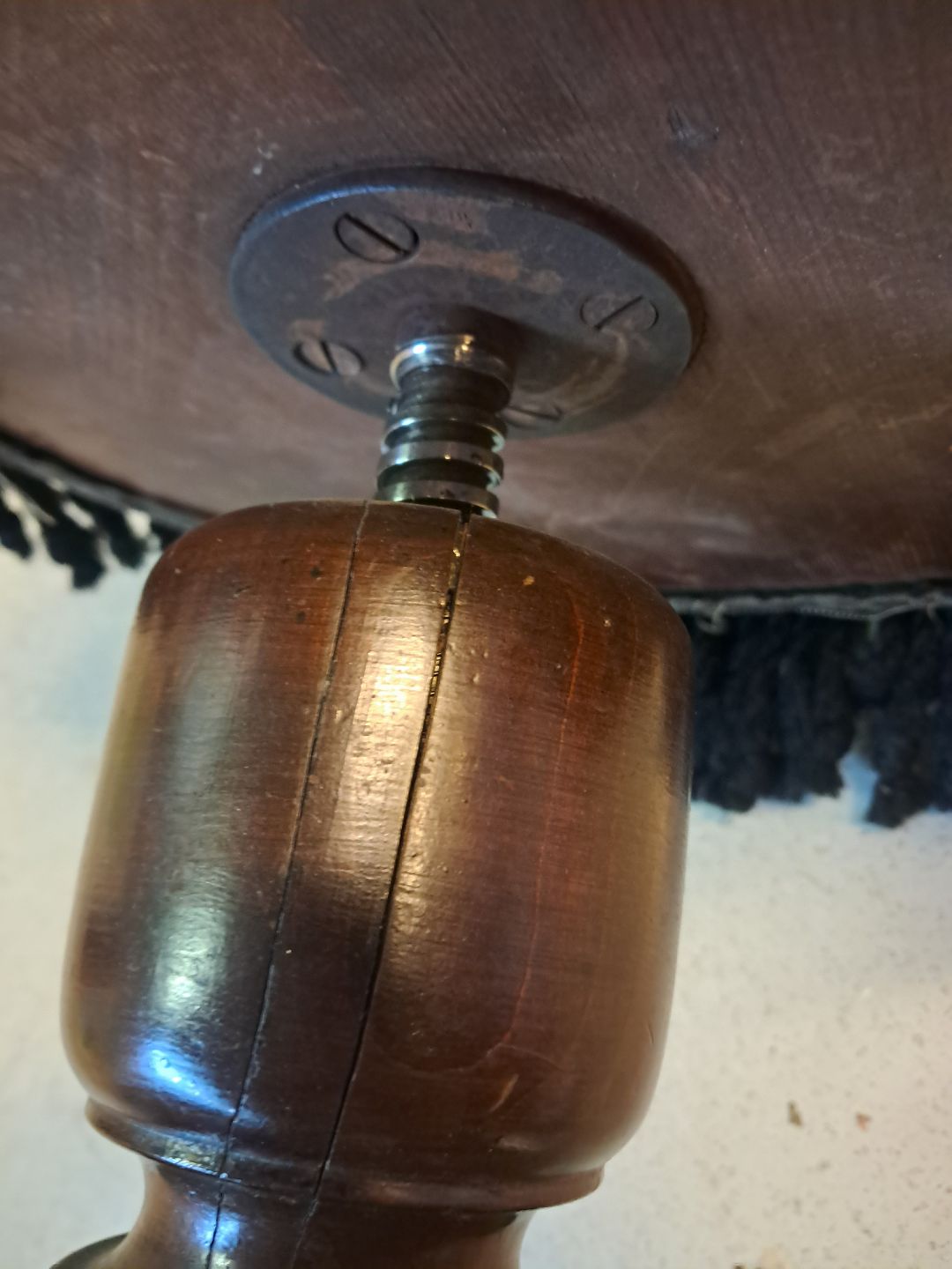 Skammekl i bøgetræ med drejefunktion, fra 1900erne.Den har brugsspor og en revne i træet. (se foto)