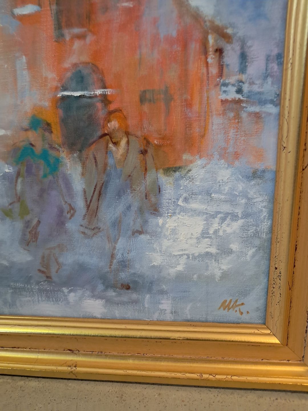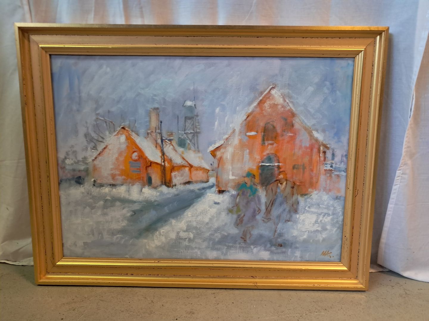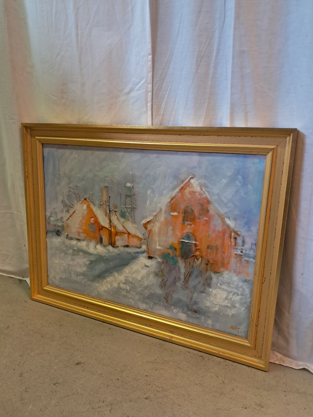 Maleri af Dragør Havn i guldmalet ramme, af : Mogens Amdi Thorsen (1924-2016)Det har brugsspor.