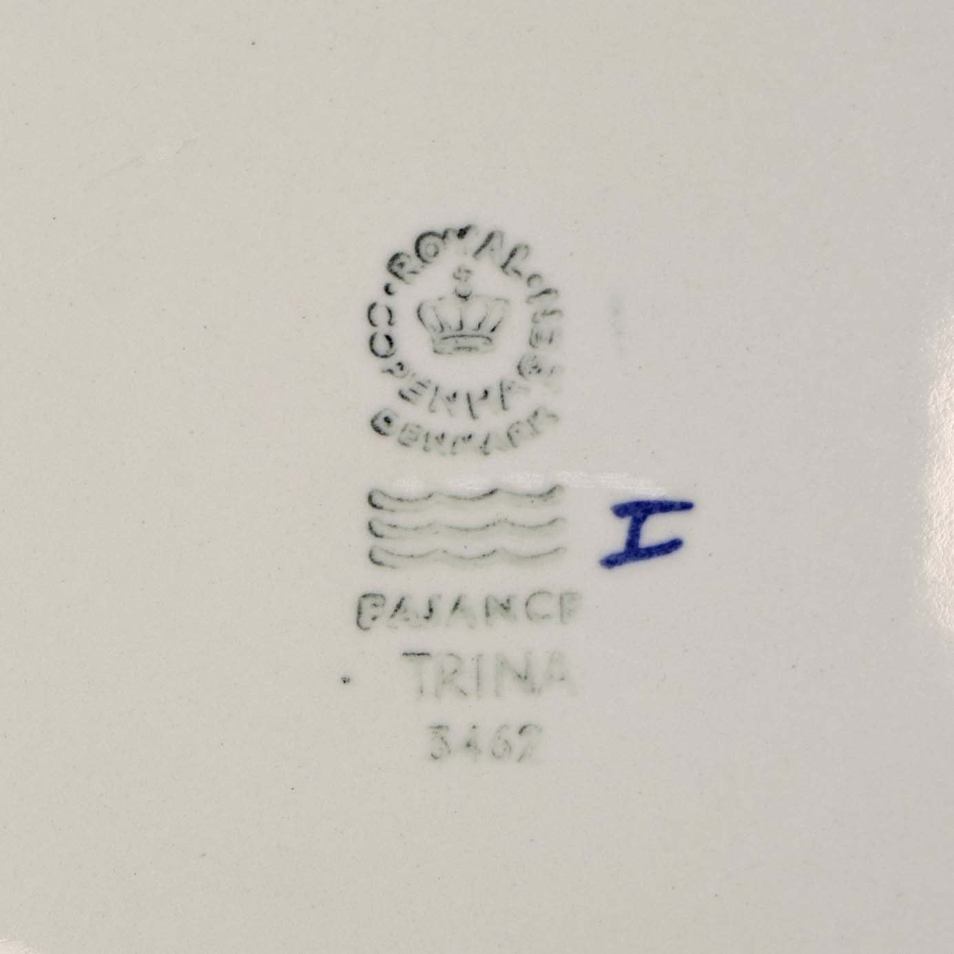 Middagstallerken i kongelig fajance fra stellet Grøn Trina. Nr. 3462Producent Royal Copenhagen