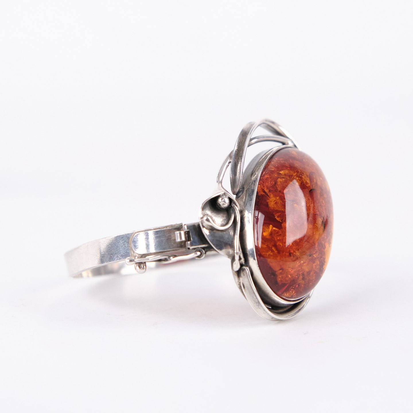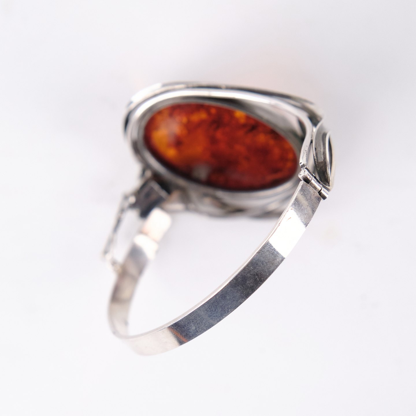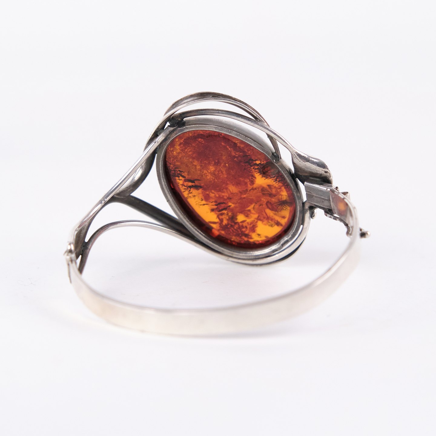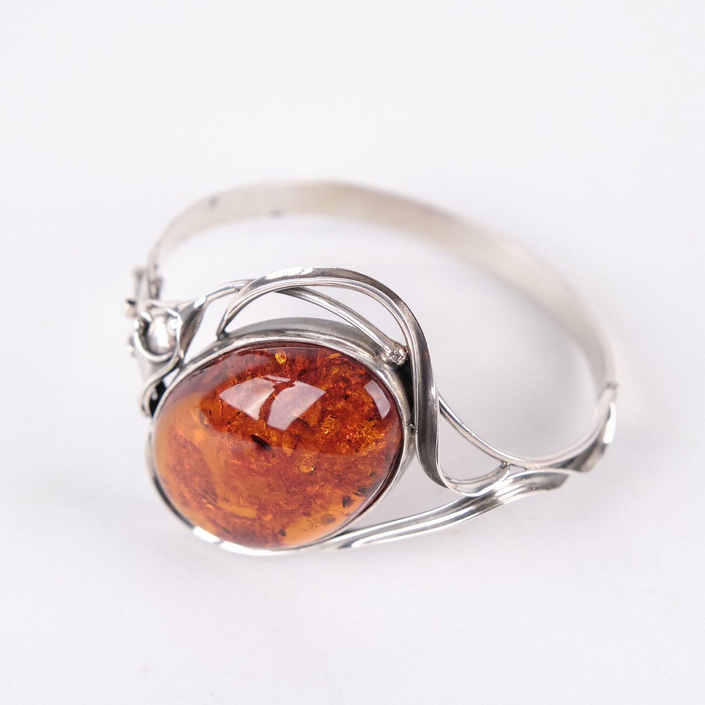 Silver bangle with amber and safety clasp. Unique jewelry design with amber.— Type: Bangle