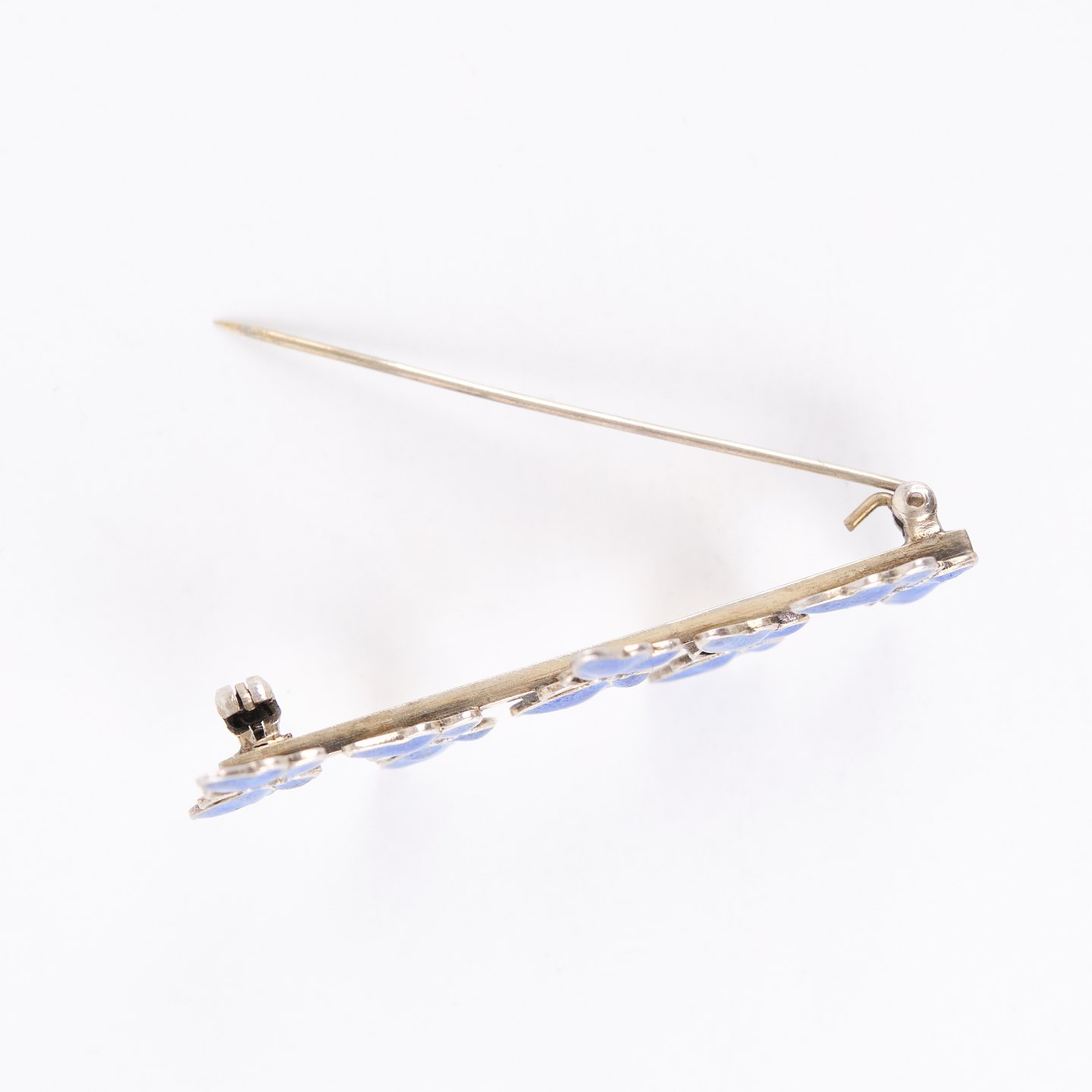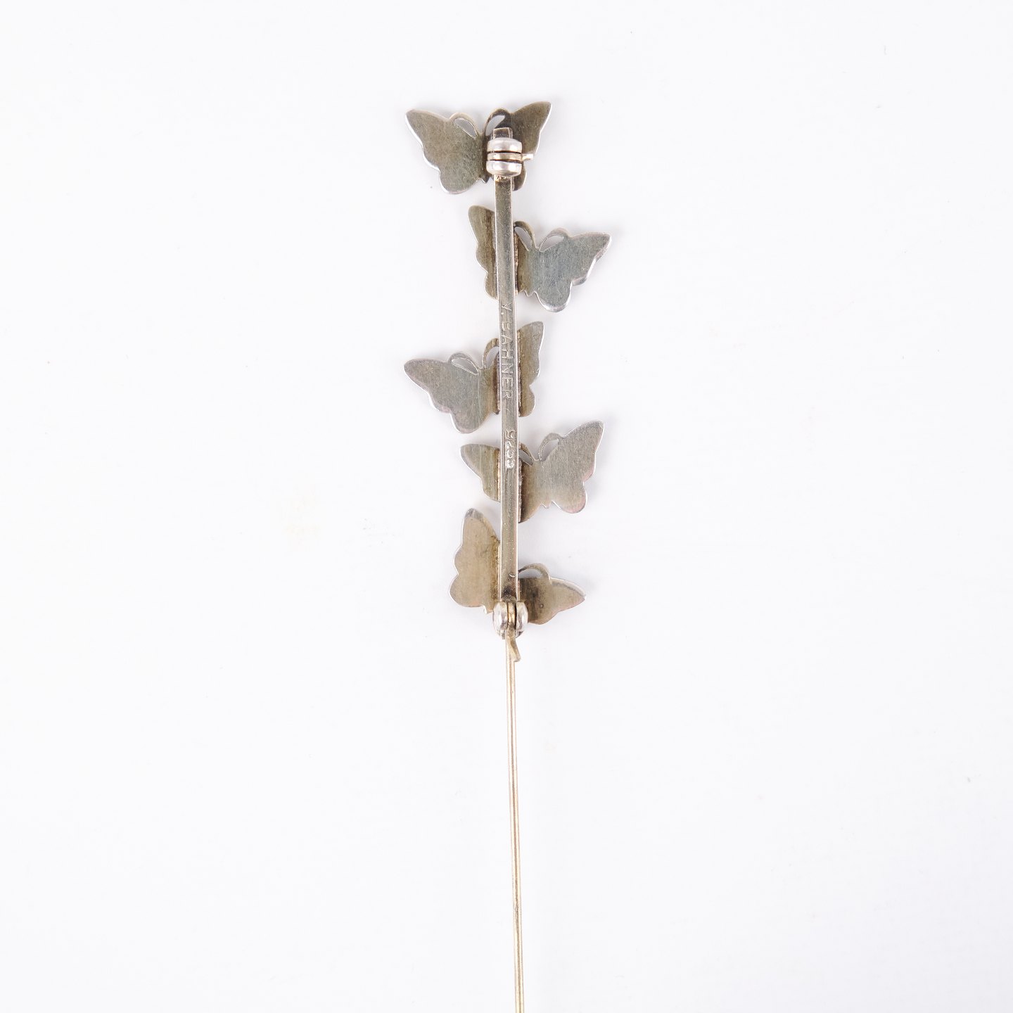 Brooch featuring blue enamel butterfly motifs, stamped 925 S and crafted by Volmer Bahner & Co., Copenhagen (1962–1987). A characteristic piece of Danish jewellery with detailed enamel work and the distinctive style of a renowned maker. Enamel fully intact.— Manufacturer: Volmer Bahner & Co.
