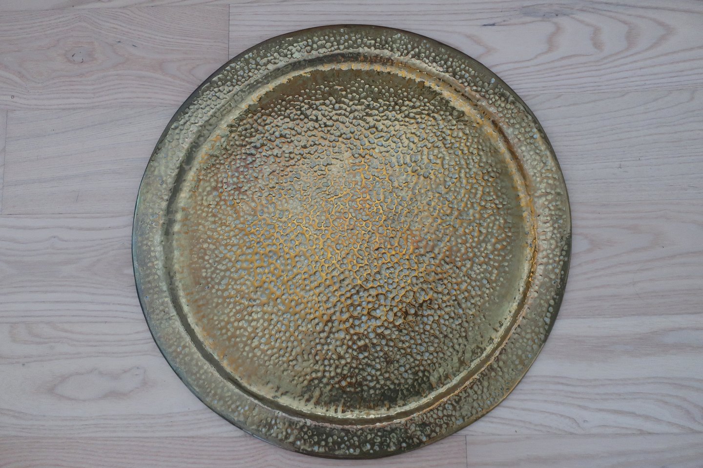 A big and beautiful tray made of brass (or to hang at the wall)Is possible to use as a top of a tablestand too