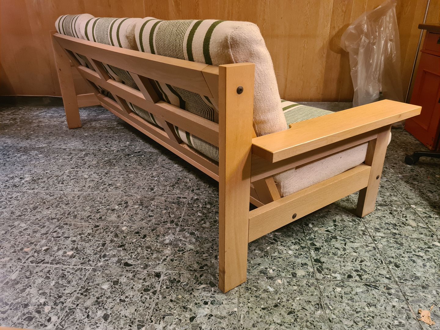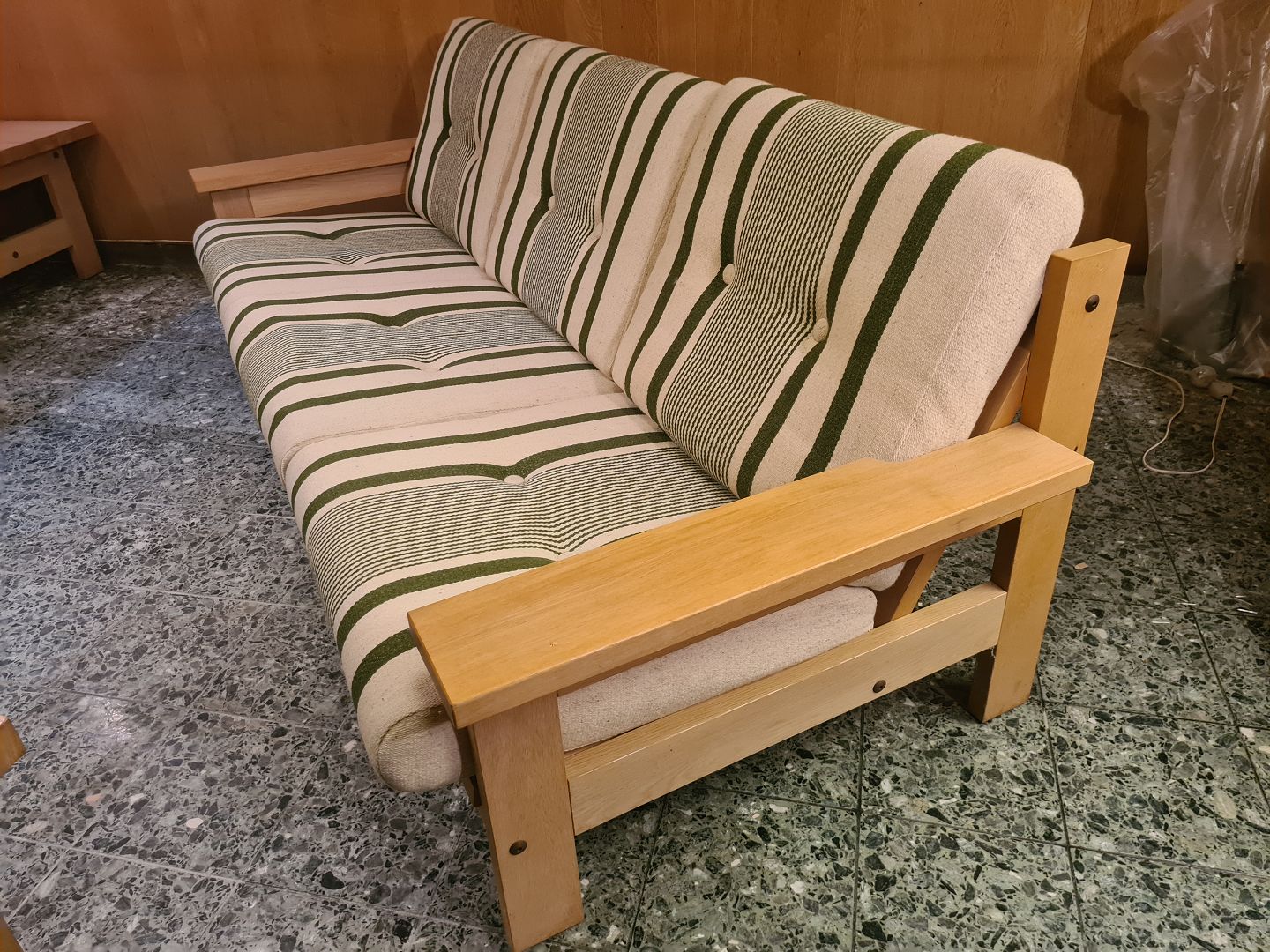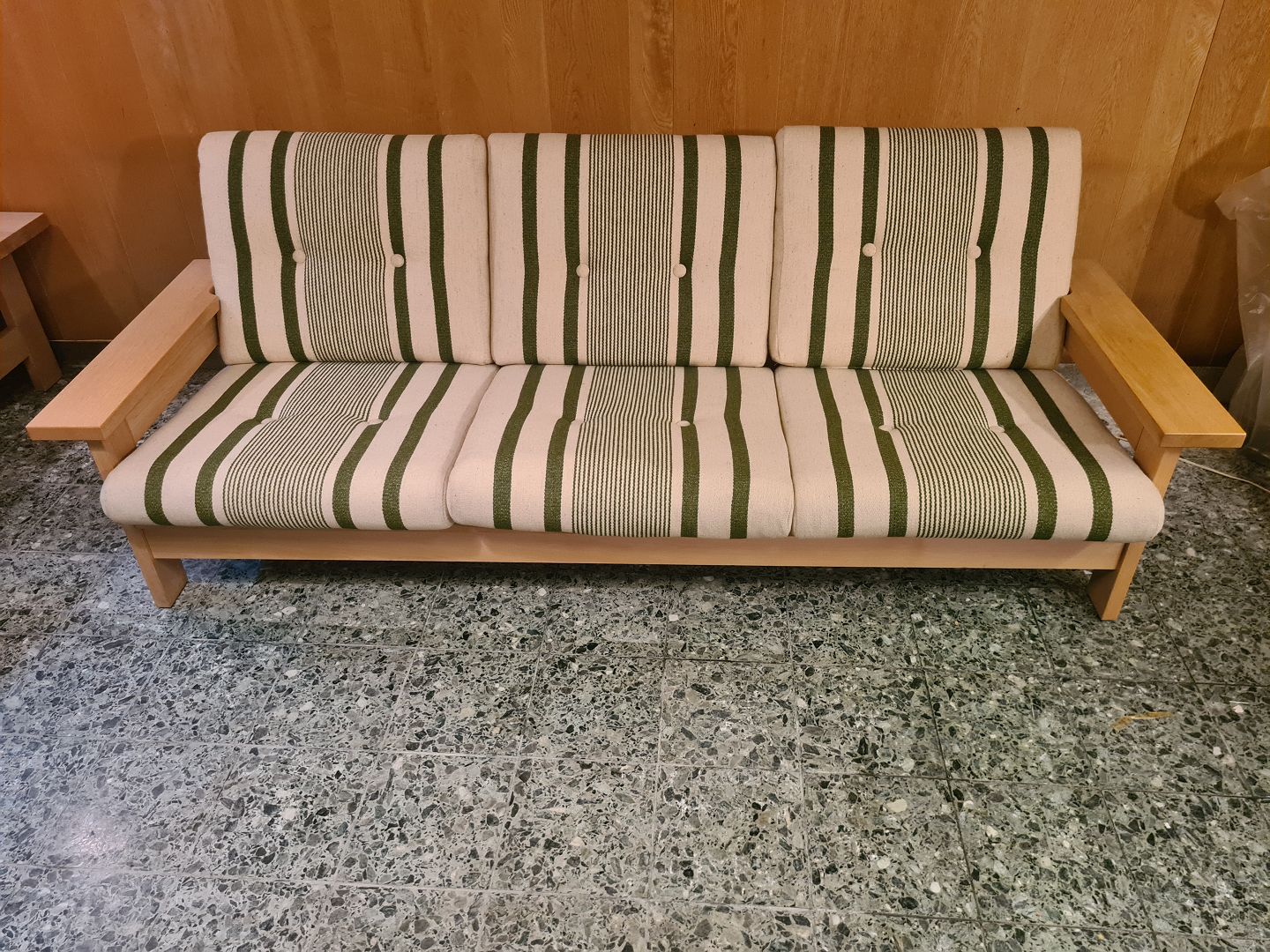 3 personers sofa fra 1970´erne i eg og med løse hynder. Formgivet hos Laboremus i Viborg. Fremstår pæn og velholdt uden de store brugsspor.Højde 78 cm. Bredde 215 cm. Dybde 94 cm.