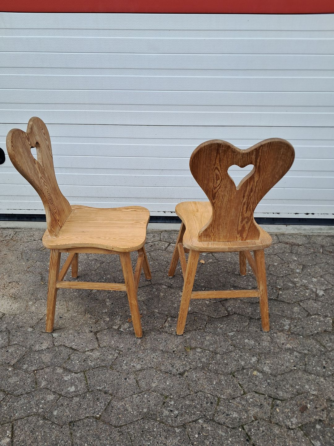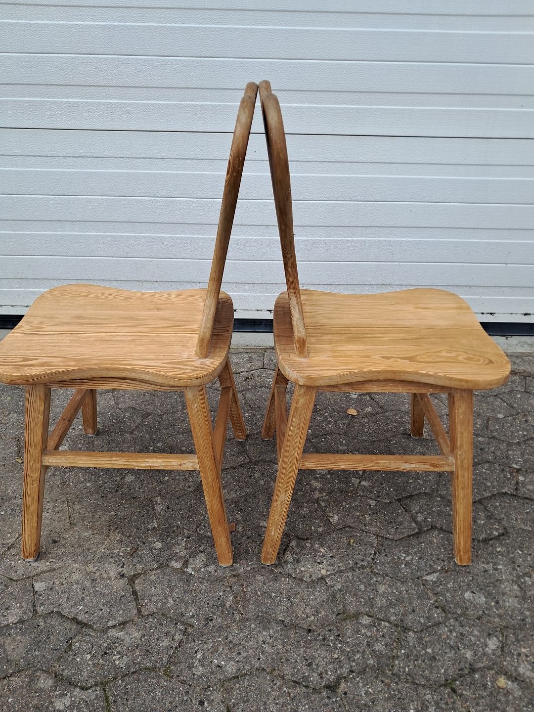 2 Stole i massivt fyrretræ, fra 1980erne.De har brugsspor og er lidt løse i ryggen.