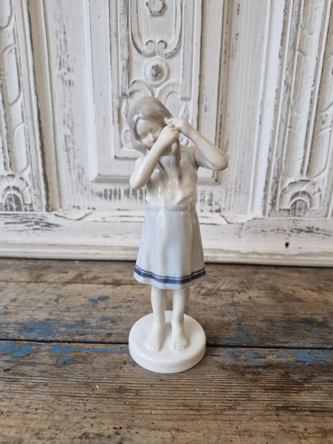 B&G sjælden Art Nouveau figur, pige der fletter hårNo. 1758, 1. sortering
