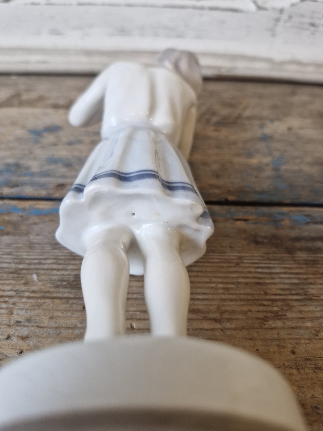Fremstår med nogle glasur slibninger under kjolens kant, udført under produktionen.