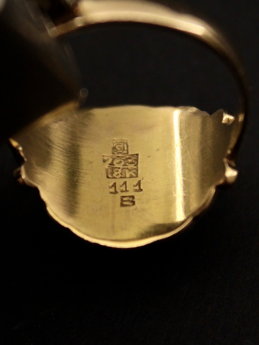 Georg Jensen 18 karat gold ring #111B size 56 with turquoise with stamp before 1945 item no. 623553 Dealer