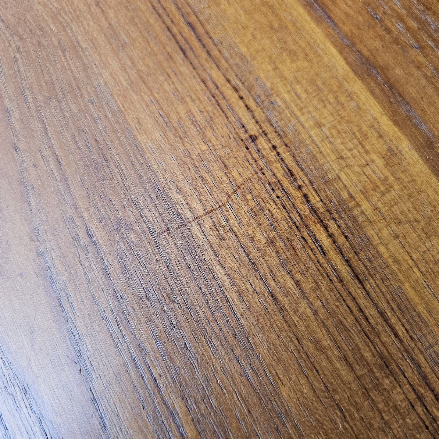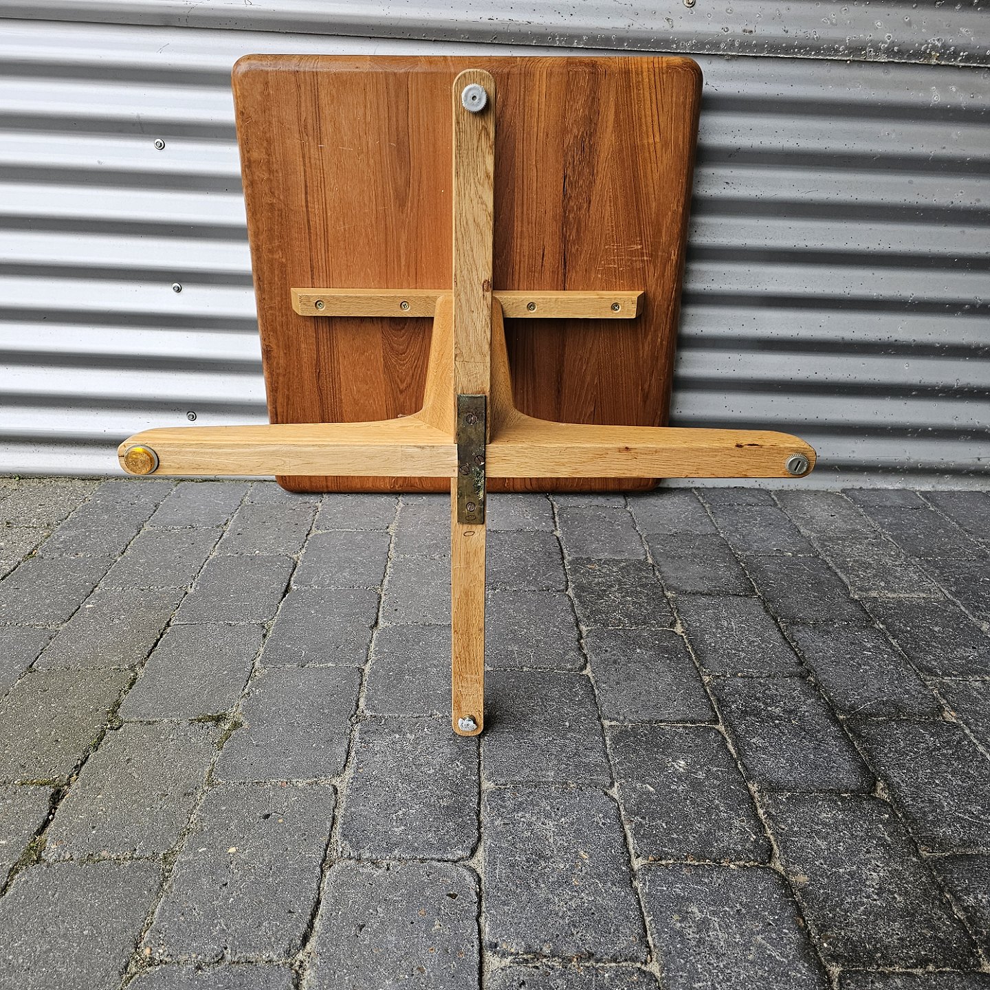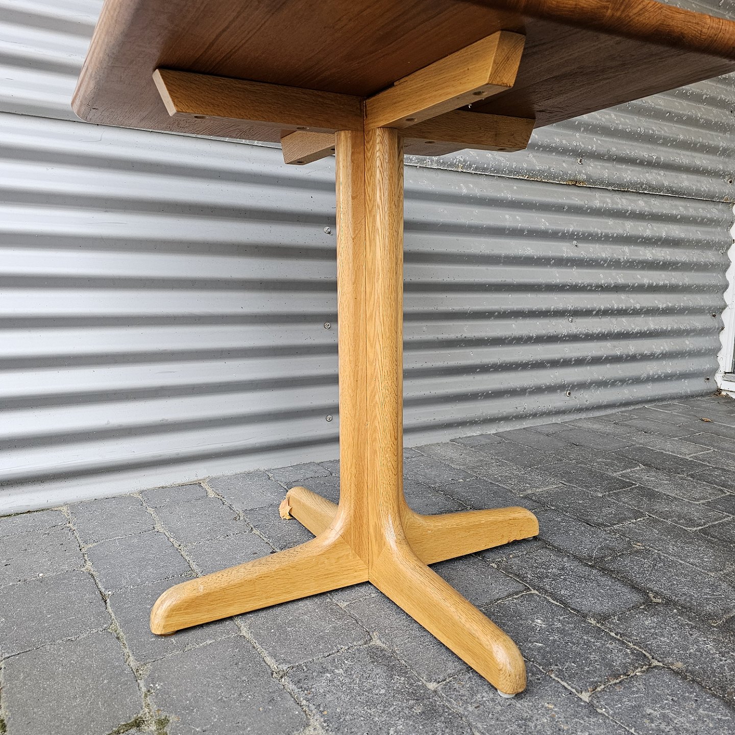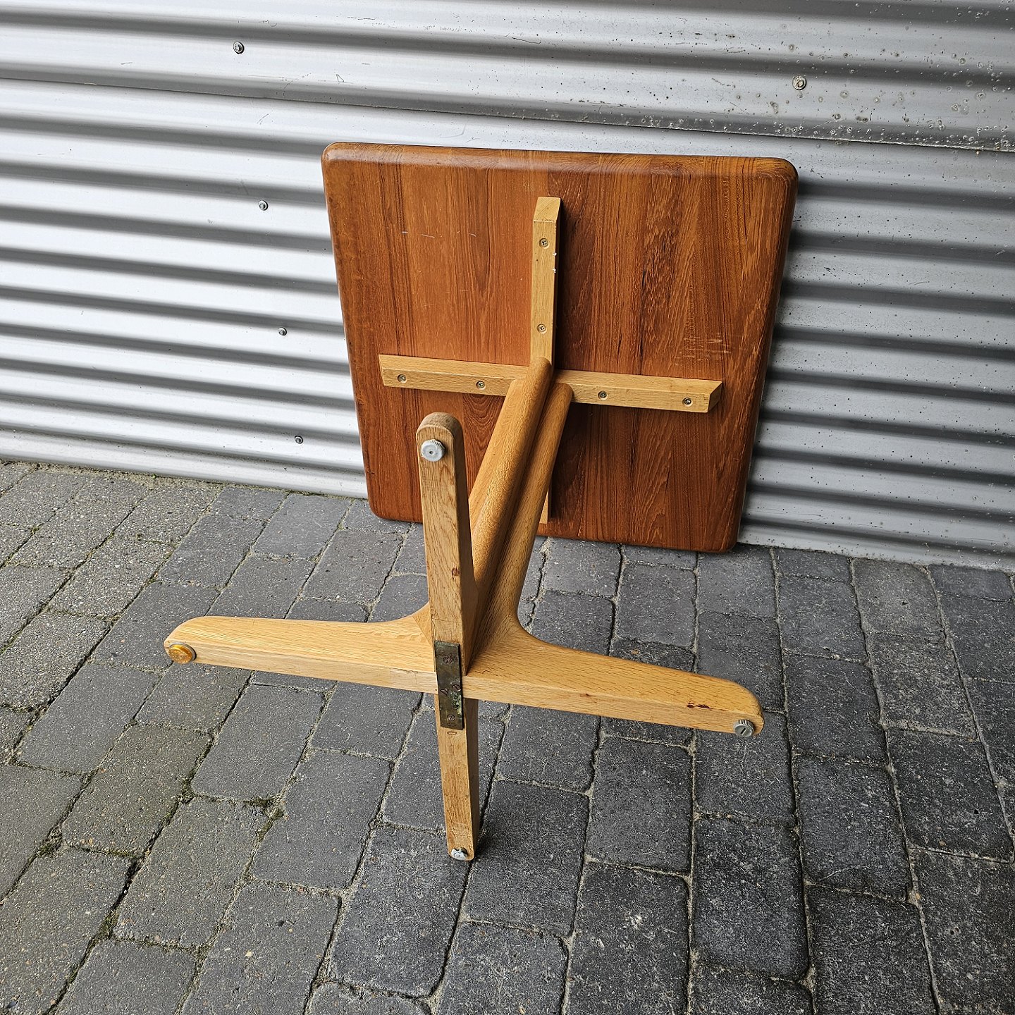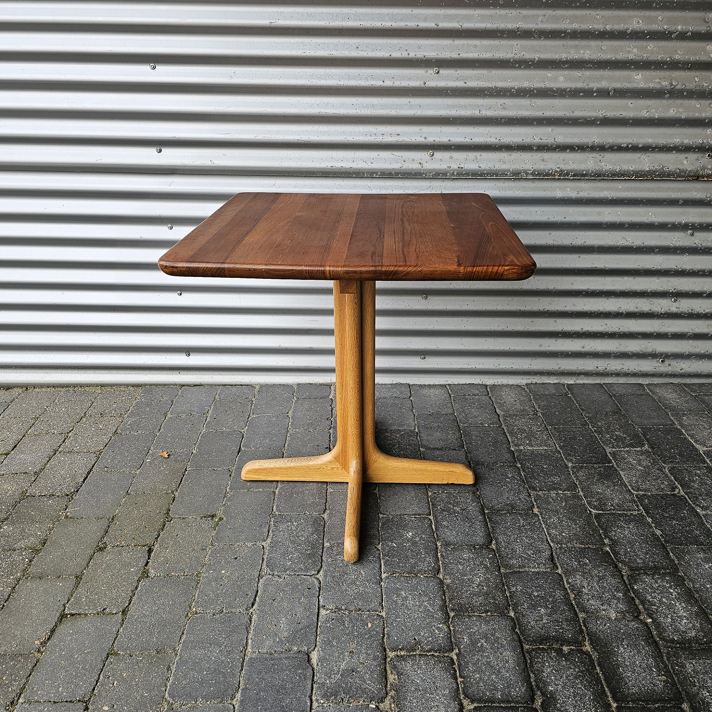 Kvadratisk spisebord i massiv teak med firepasfod i egetræHøjde 73 cm