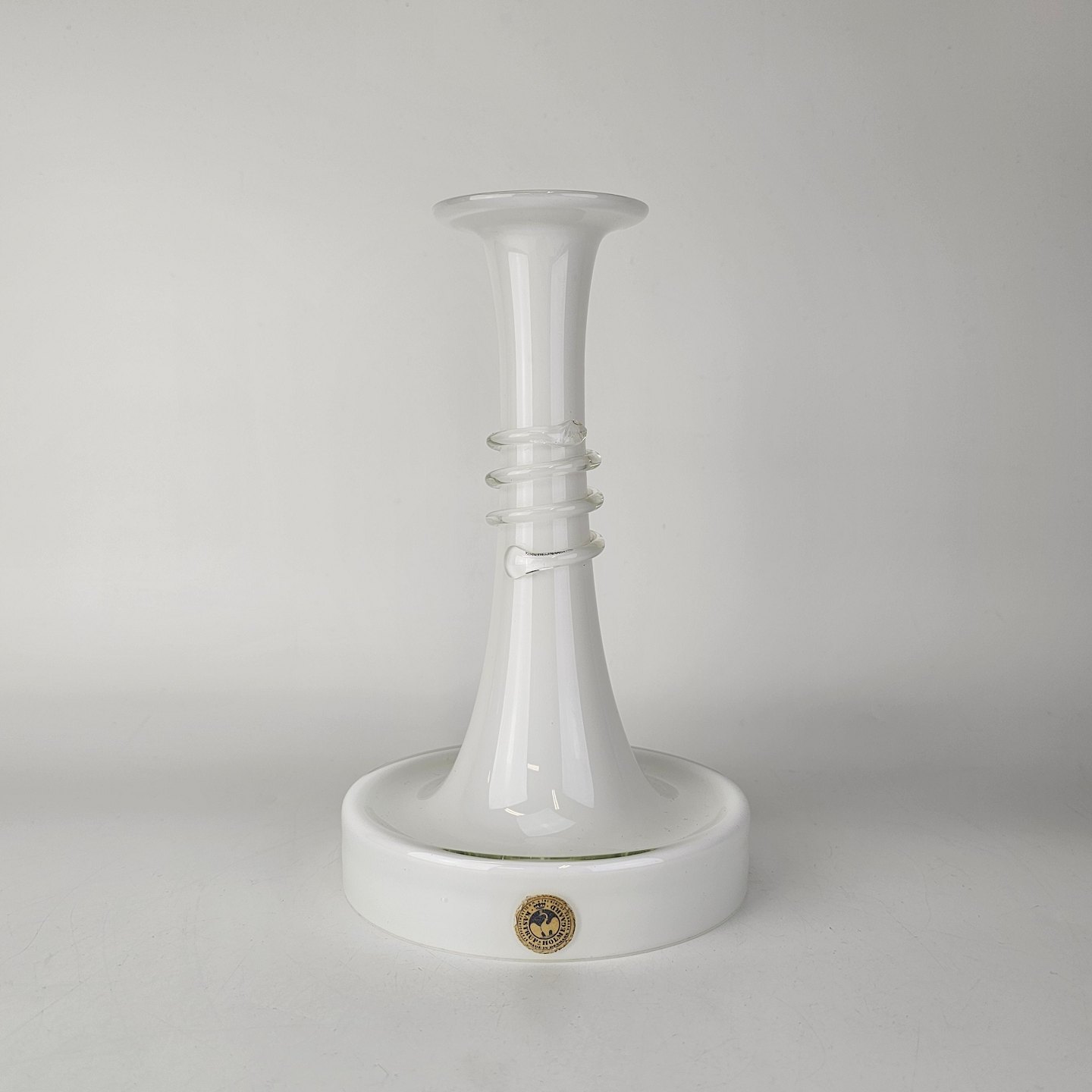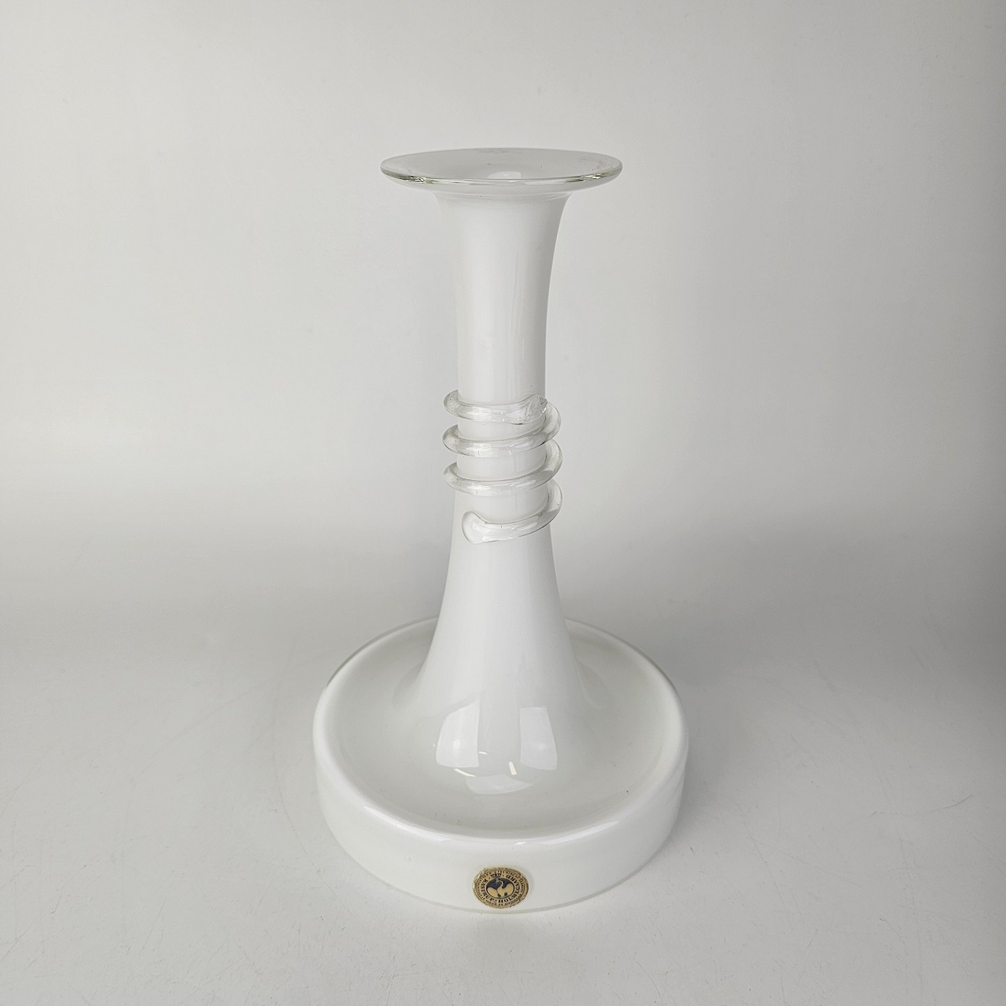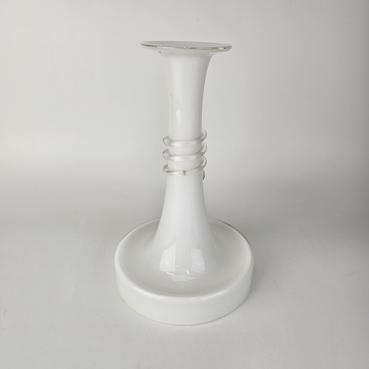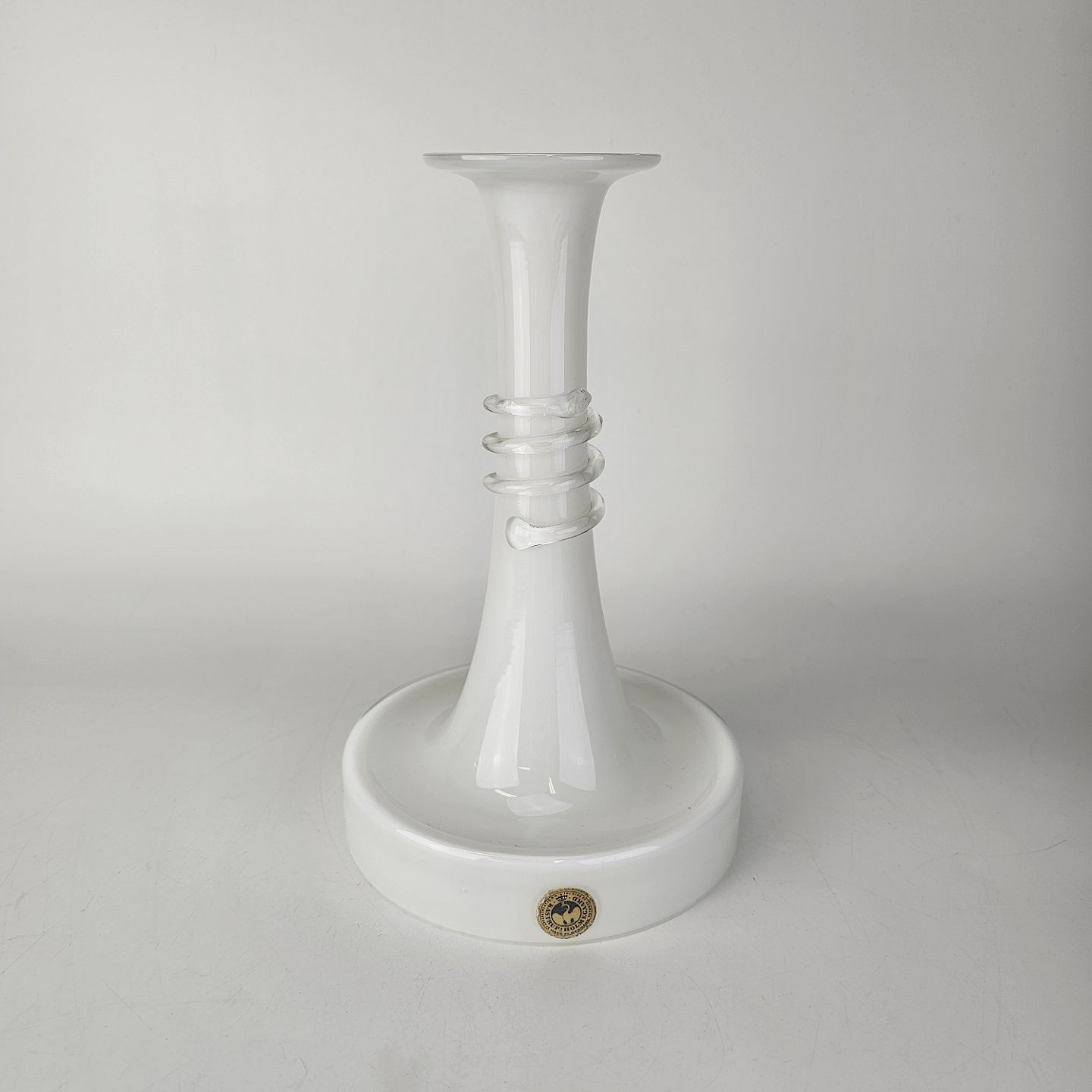 Lysestage i hvidt opalglas omviklet med en klar glastråd fra serien NapoliFormgiver Michael Bang