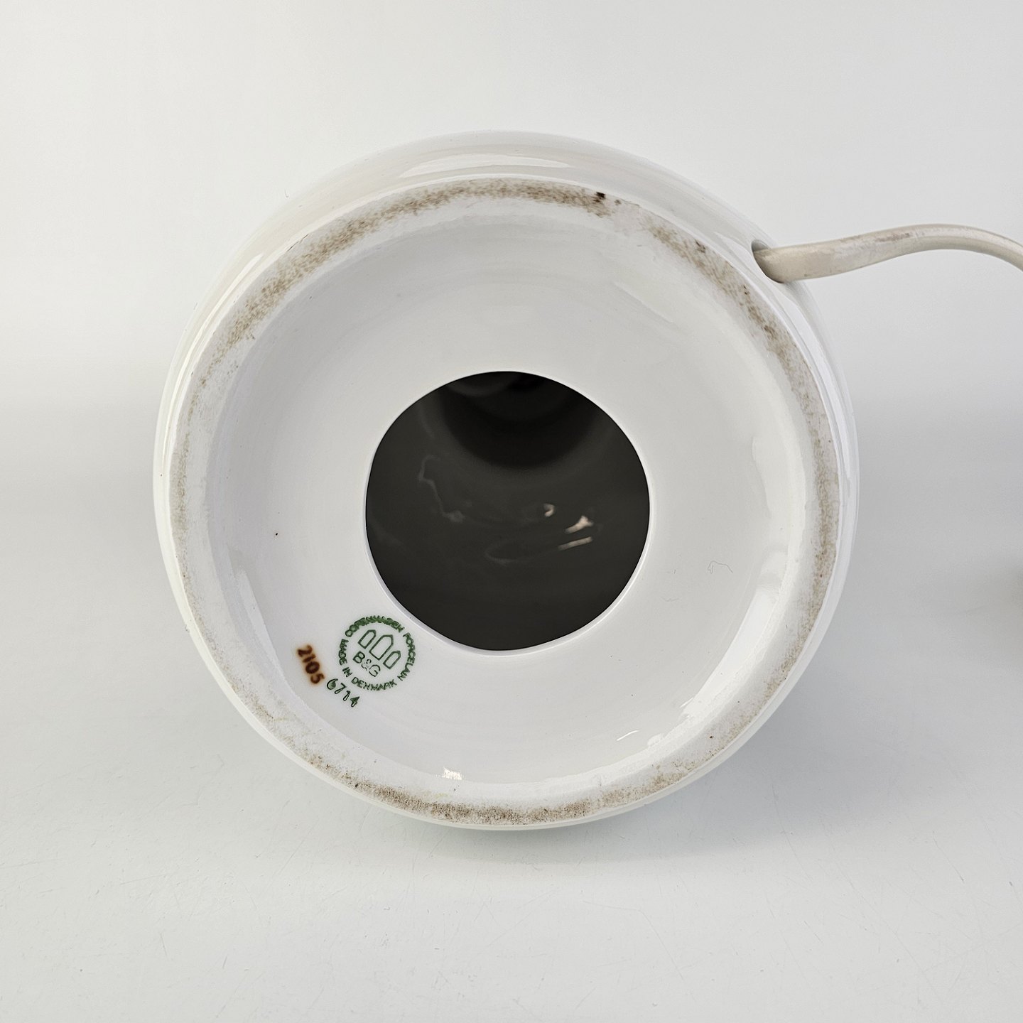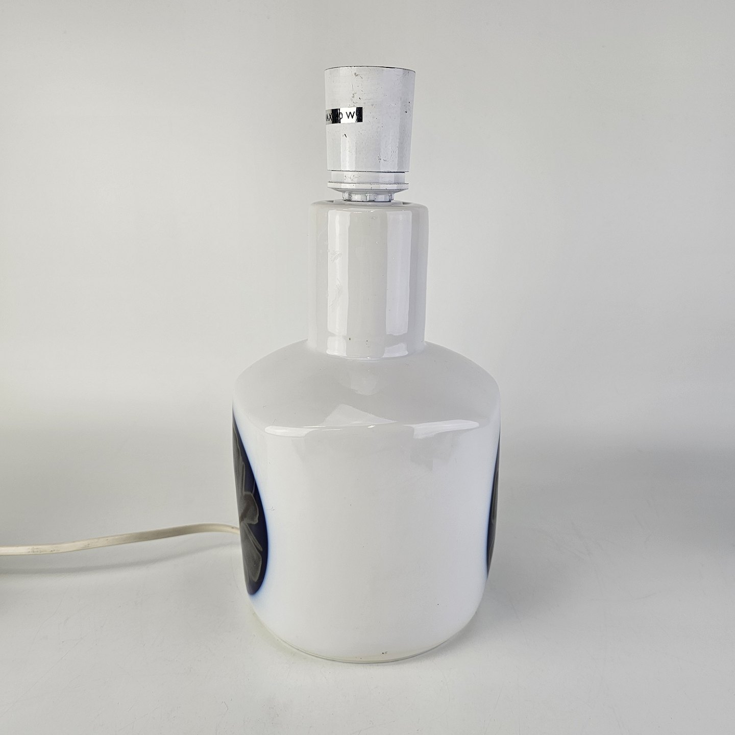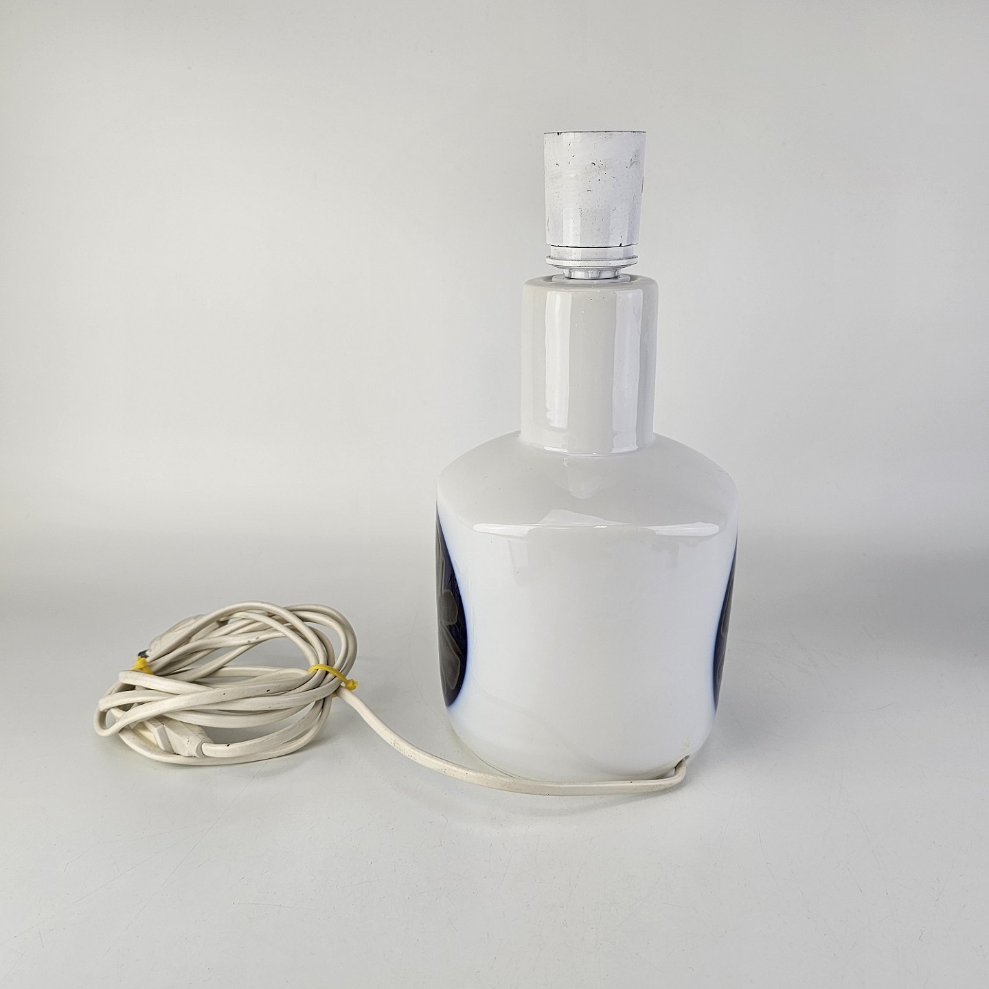 Bordlampe i hvidt porcelæn med abstrakt dekoration i blå og gråNr. 6714