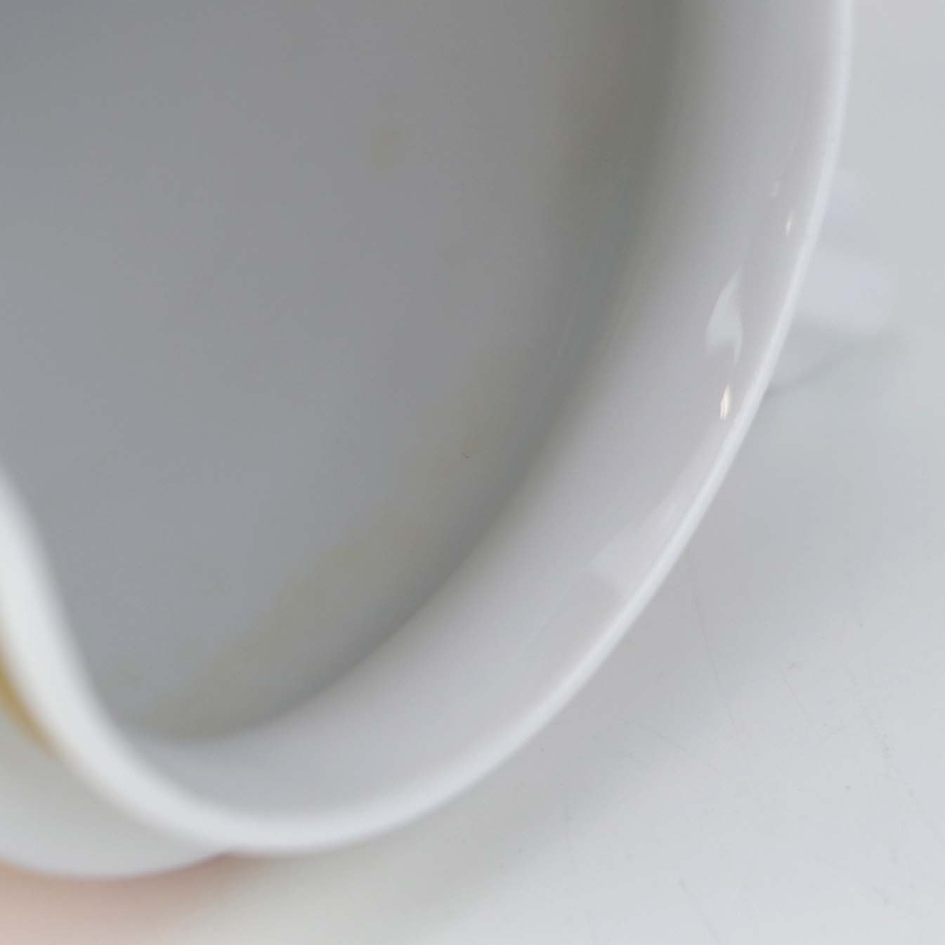 Fremstår med overfladisk ridse og brugsspor på dekorationen samt indvendige brugsspor ved topkanten.