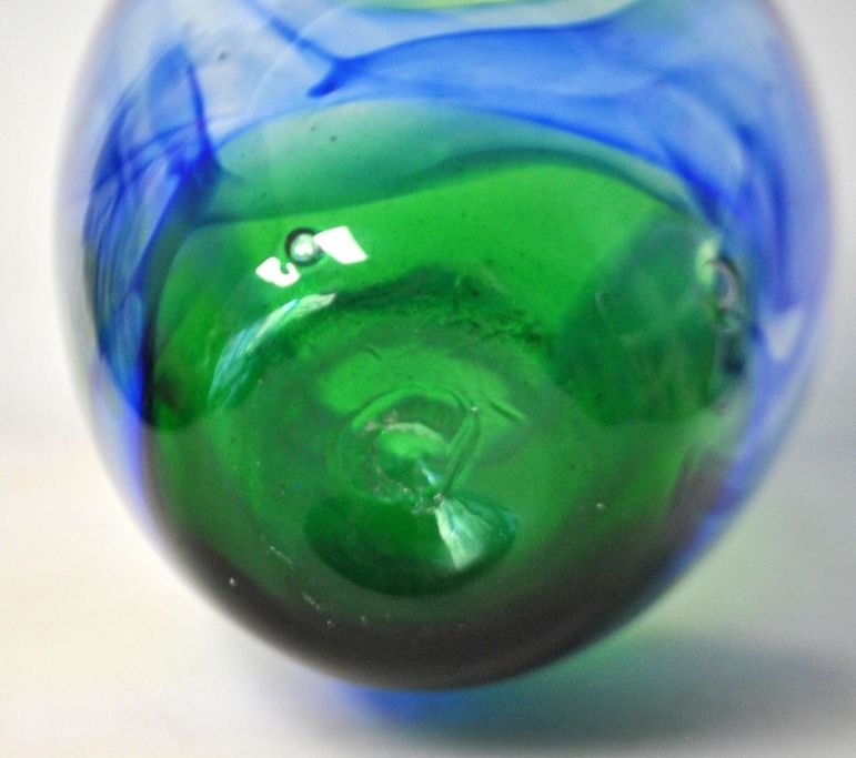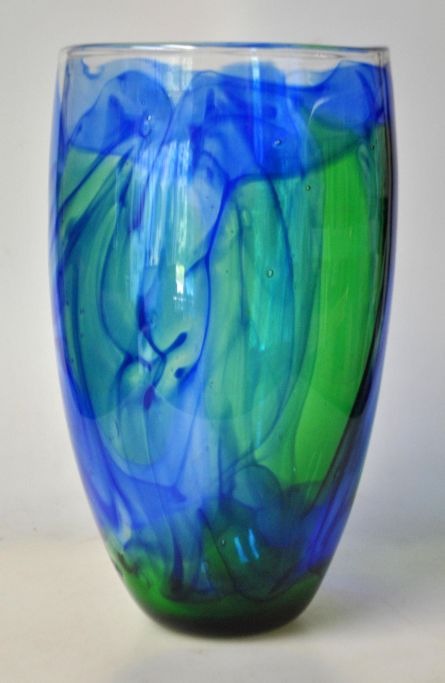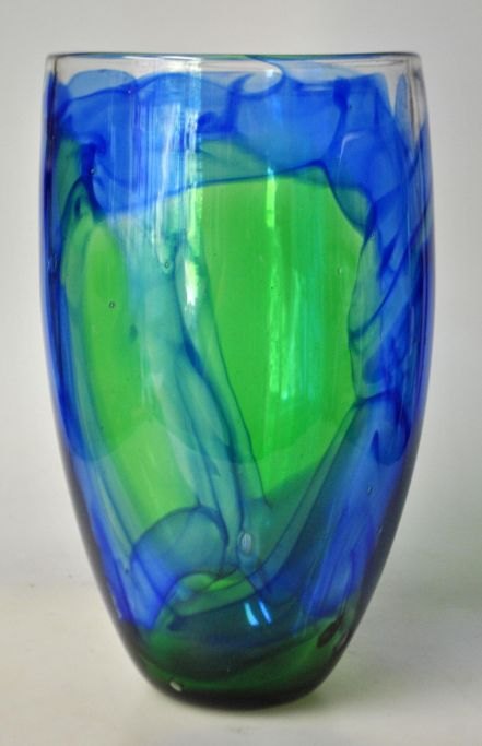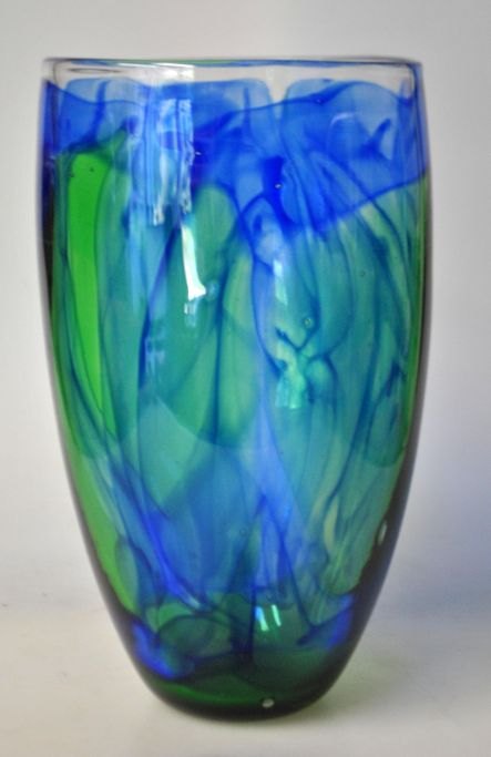 Danish artist (20th century): Glass vase in blue and green. H: 21 cm. Dia: 12 cm.Item number: 28221