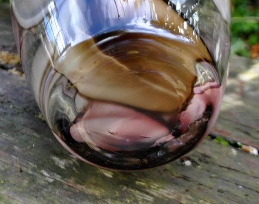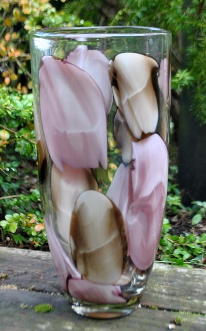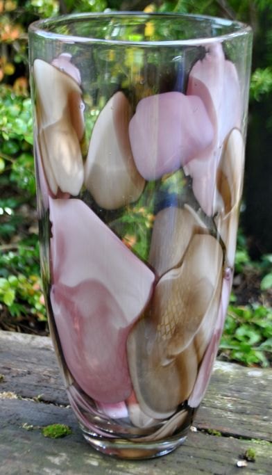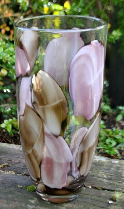 Glass vase with pink and brown decoration, 20th century. H: 30 cm. Dia: 14 cm.Item number: 28230