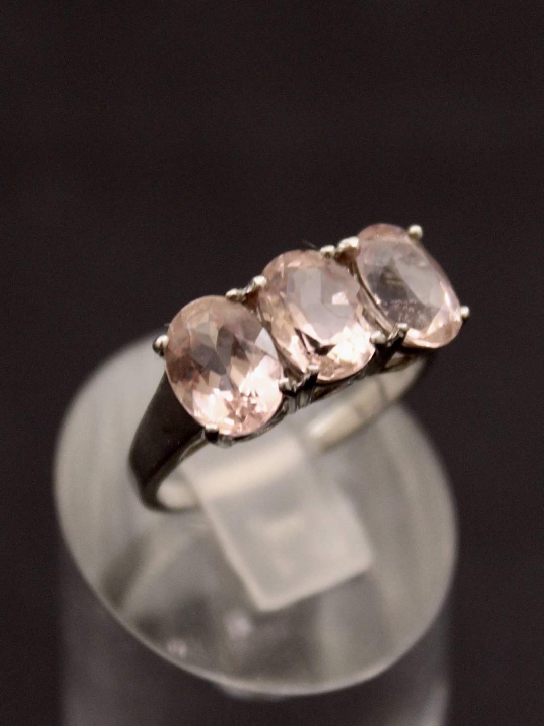 9 carat white gold ring size 56 with 3 light pink stones item no. 623829 Dealer