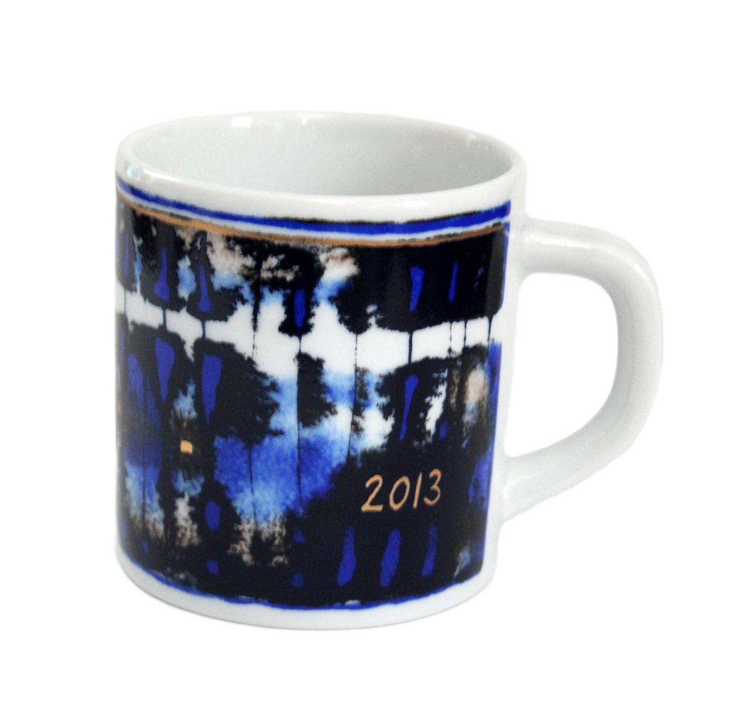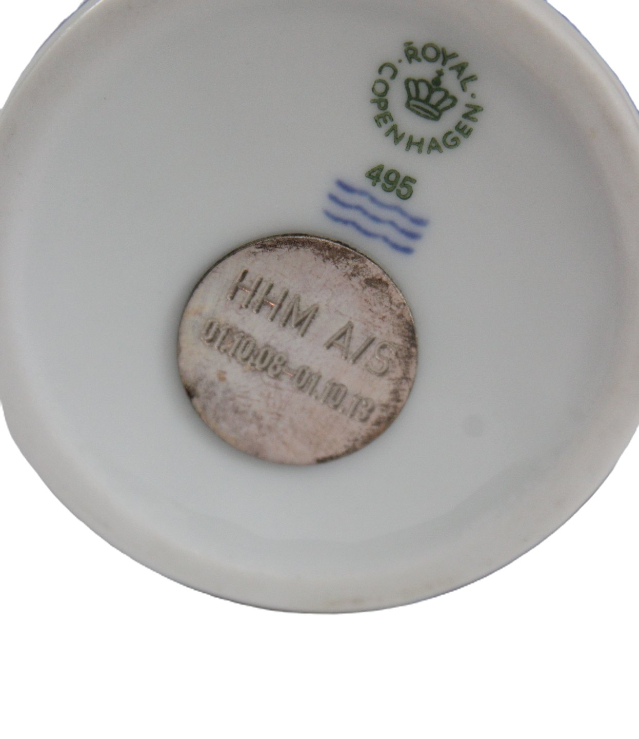 Royal Copenhagen, Lille årskrus 2013 med graveret sølvplaquette i bund.. Designer Pia Andersen. Nr. 495. Årskrus er produceret fra 1967 til 2014. Højde 7,5 cm. Diameter 6,5 cm. Pris: 600 kr. stk. Lager: 1 Udstiller