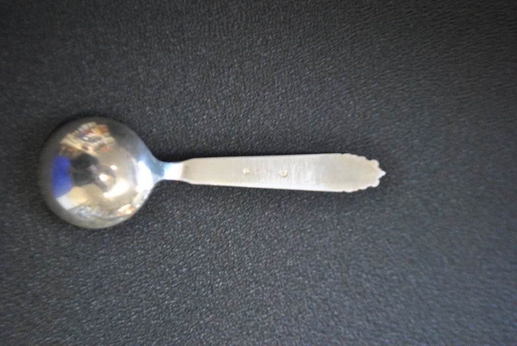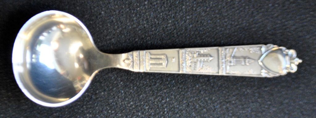 Reppien commemorative spoon, 1954, Skanderborg, Denmark. Handle with depictions of: Himmelbjerget, Skanderborg Castle Church and Ejer Bavnehøj. Stamped. L.: 14.5 cm. Weight: 24 grams.Perfect condition!