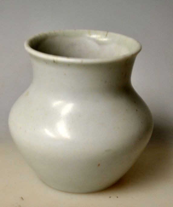 Royal Copenhagen stoneware vase - sample, unique. 20th century. Copenhagen, Denmark. Grayish glaze. Stamped with no. P 65. H.: 9 cm.NB: Rare!