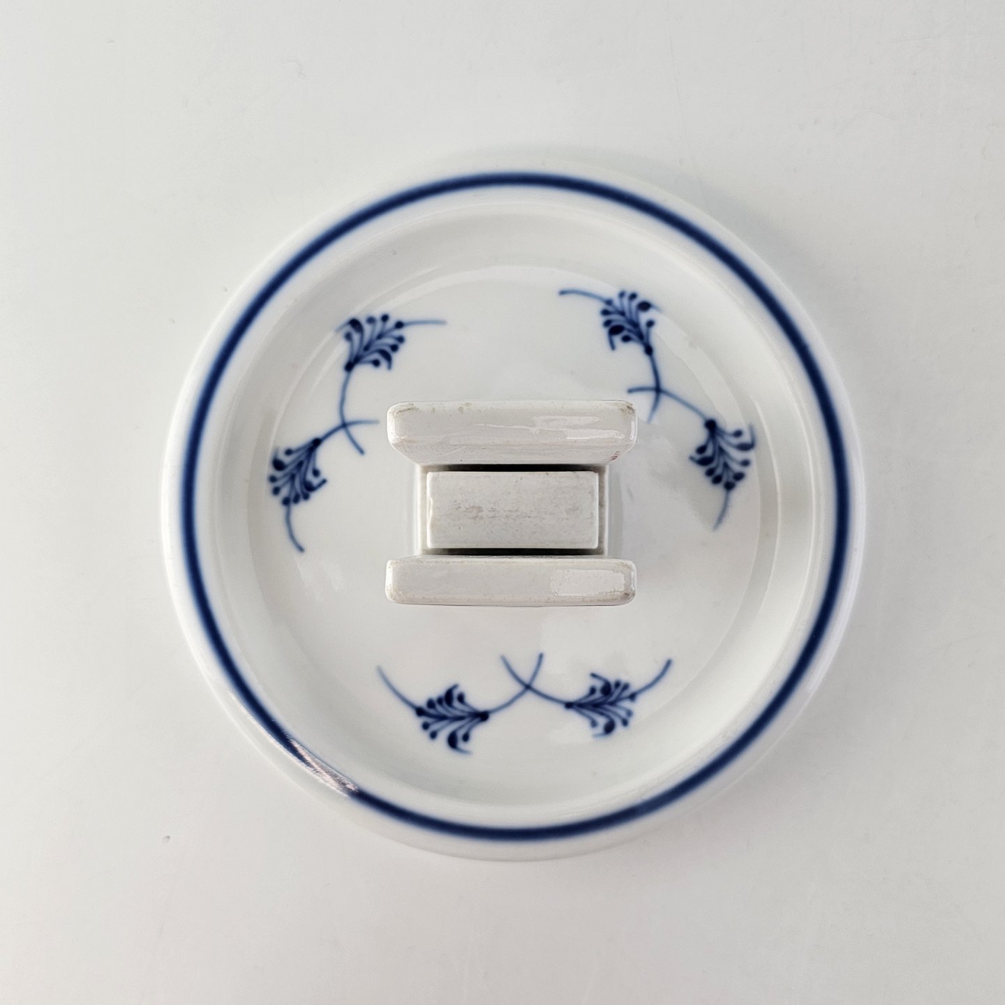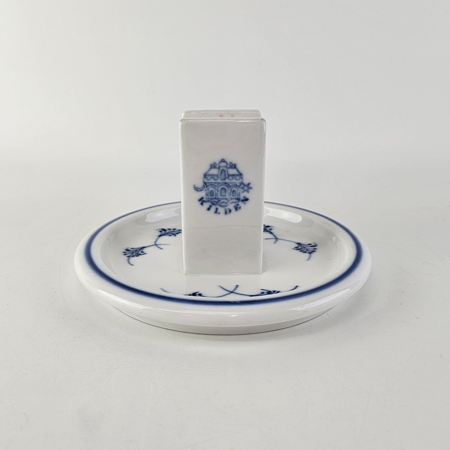 Tandstikkeholder i hotelporcelæn med motiv fra restaurant Kilden i Aalborg fra stellet BlåmaletProducent Bing & Grøndahl