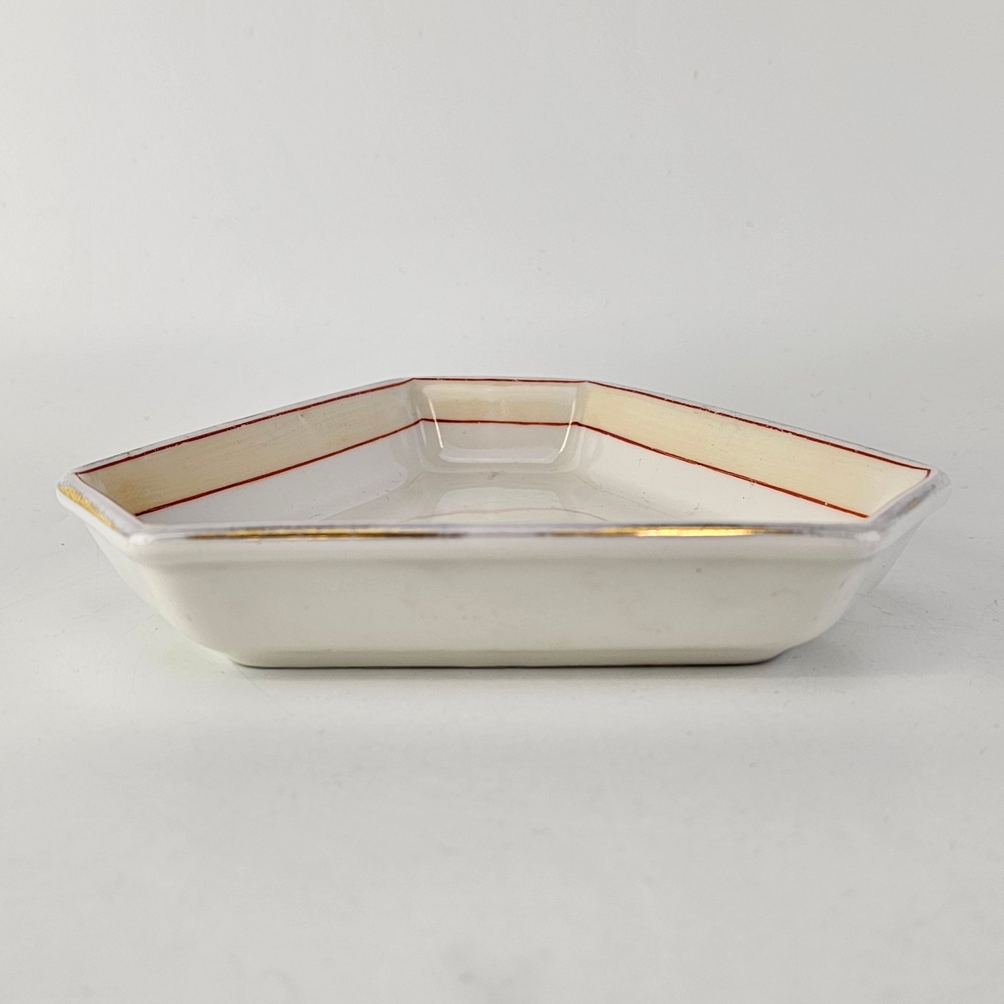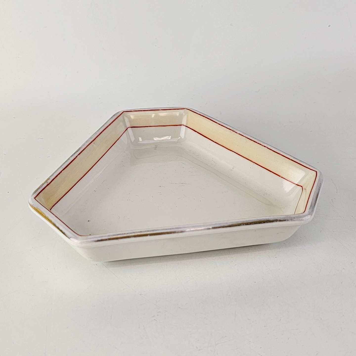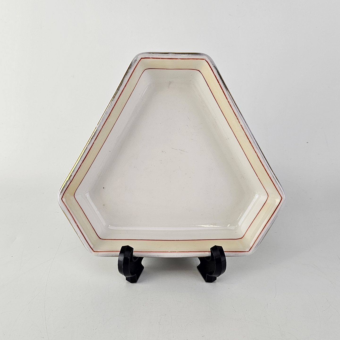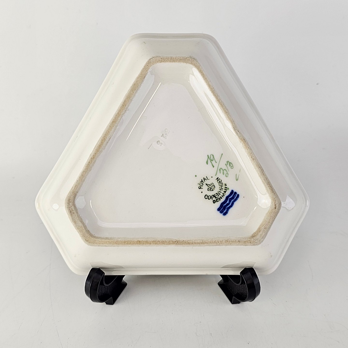 Trekantet fad i kongeligt porcelæn fra stellet Det spanske stel. Nr. 79/313 underflad til salt, peber og sennep.