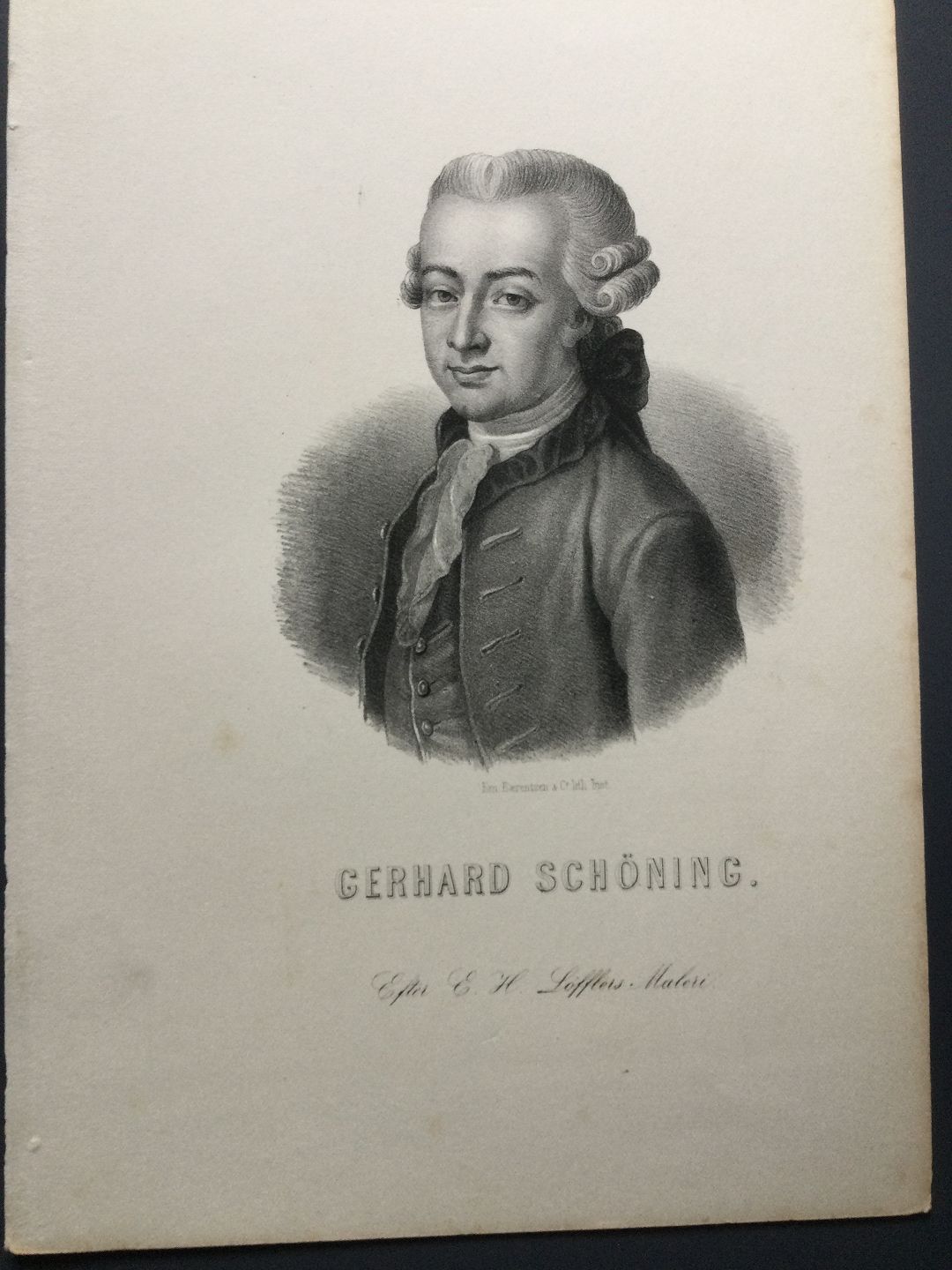 Litografi af Em. Bærentzen - Portræt af den norske historiker Gerhard Schøning 1868.