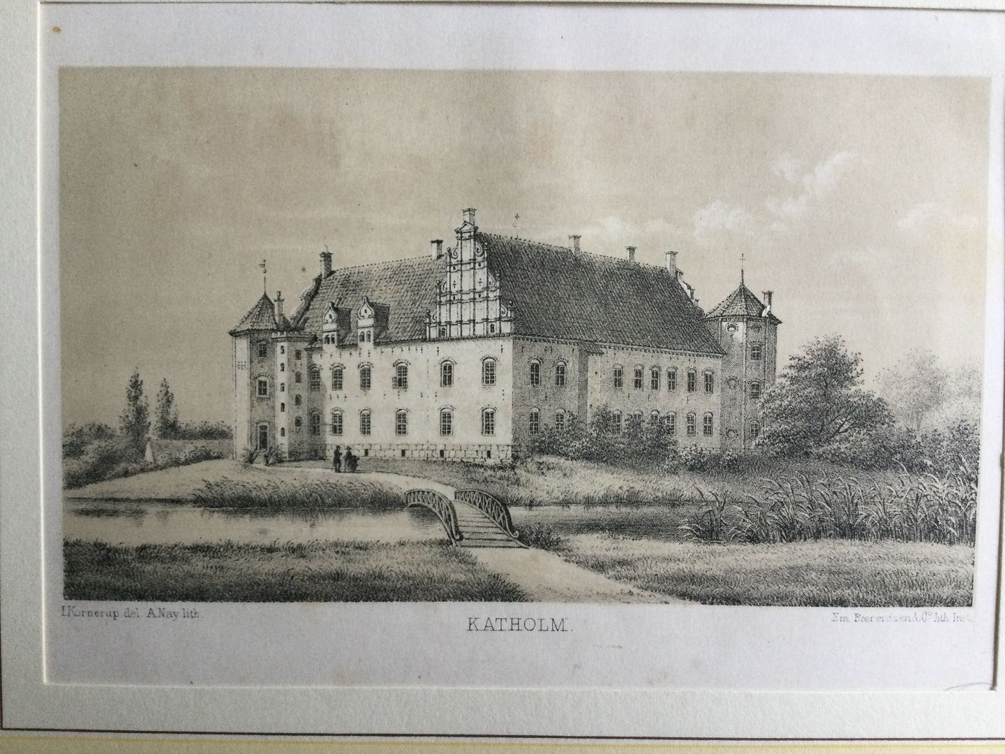 Litografi af Alexander Nay - Ledreborg Slot 1873.