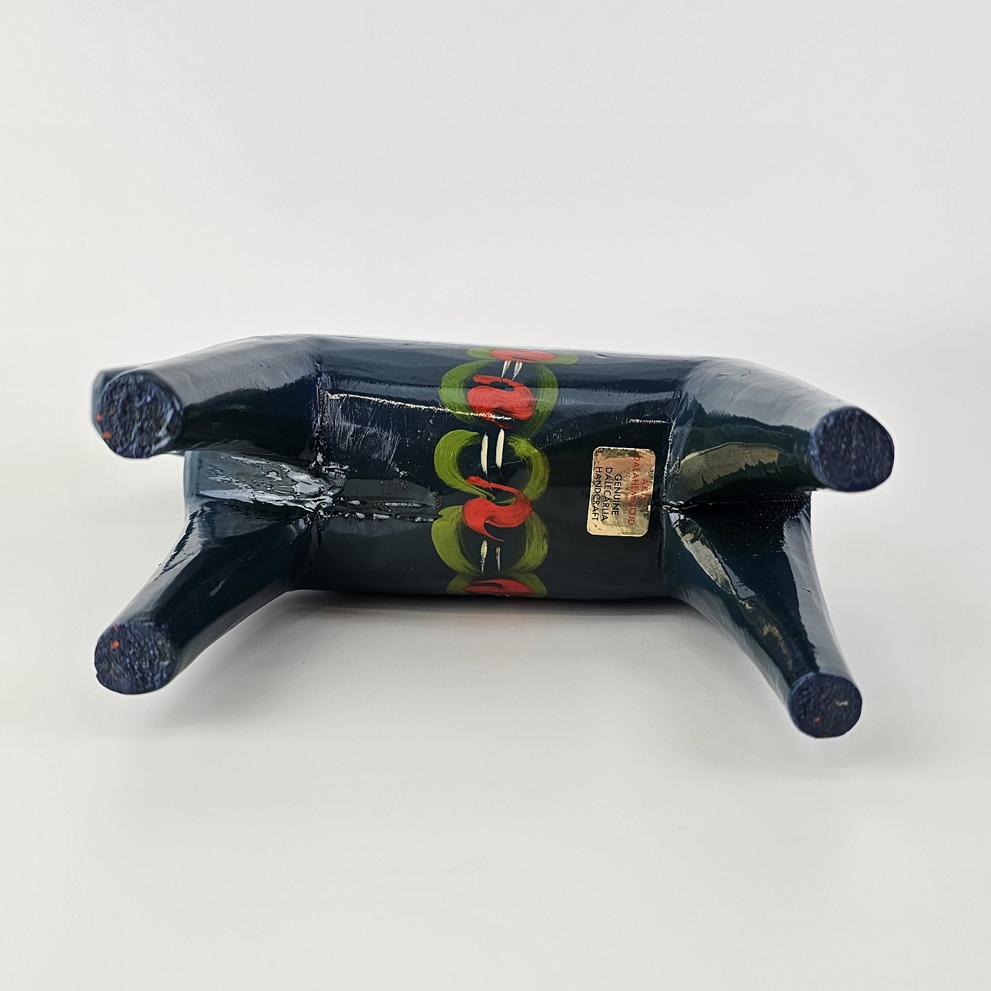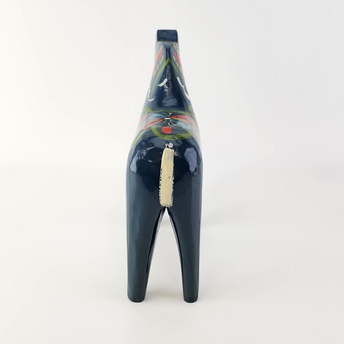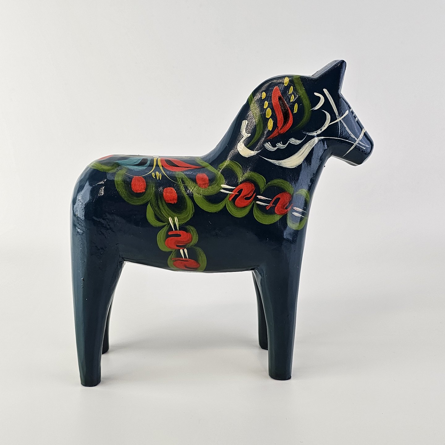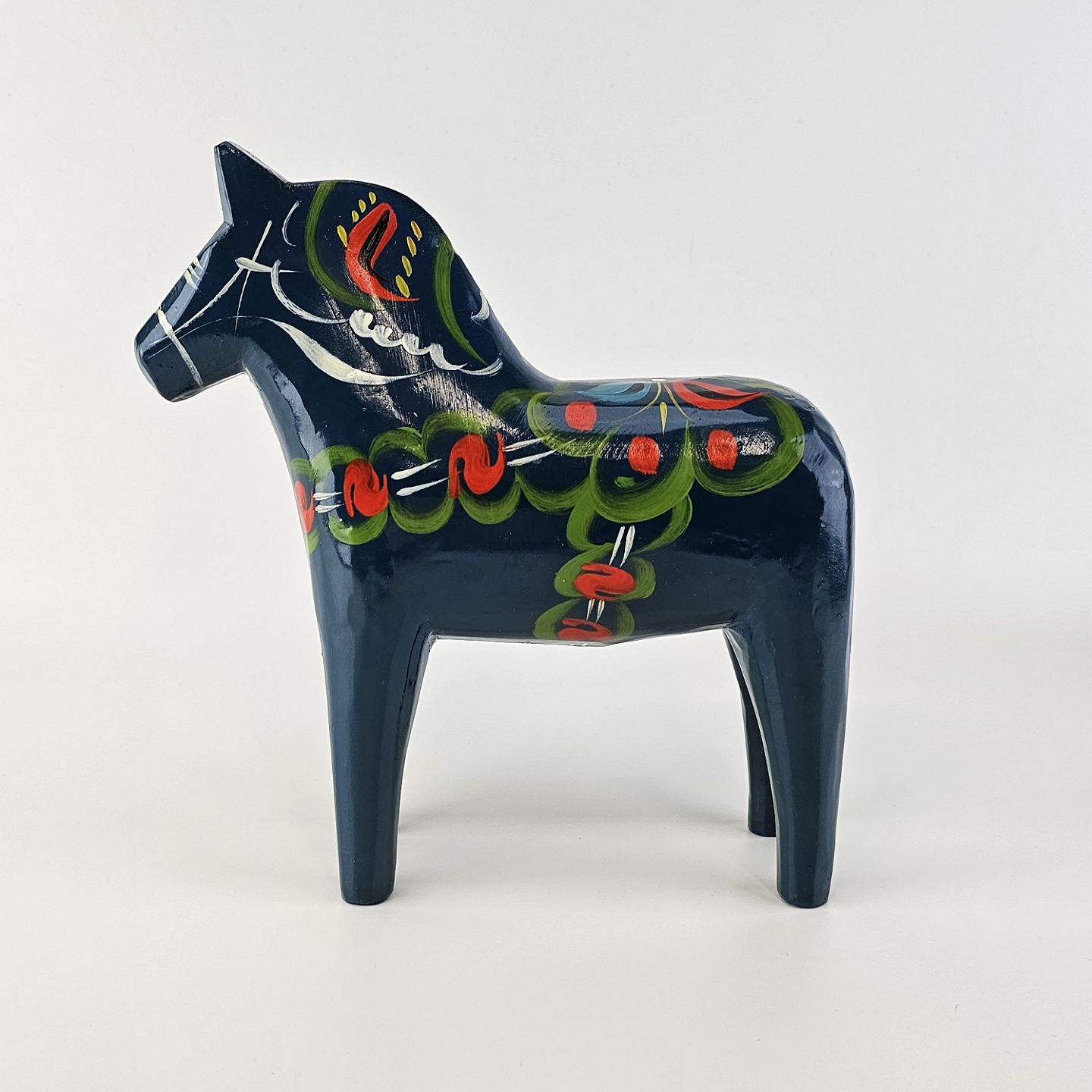 Figur af blå Dalarhest i malet og lakeret træFremstillet i Sverige