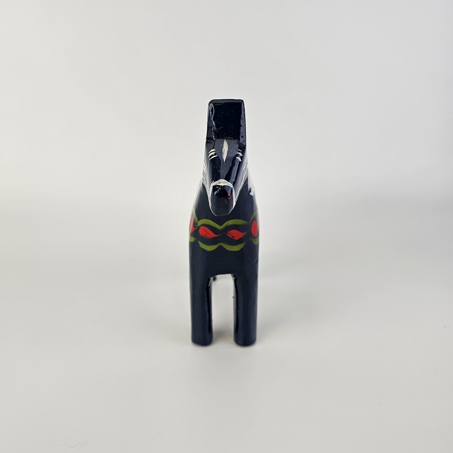 Figur af blå Dalarhest i malet og lakeret træFremstillet i Sverige