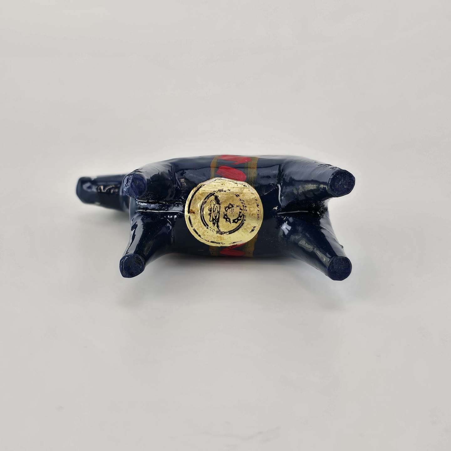 Figur af blå Dalarhest i malet og lakeret træFremstillet i Sverige