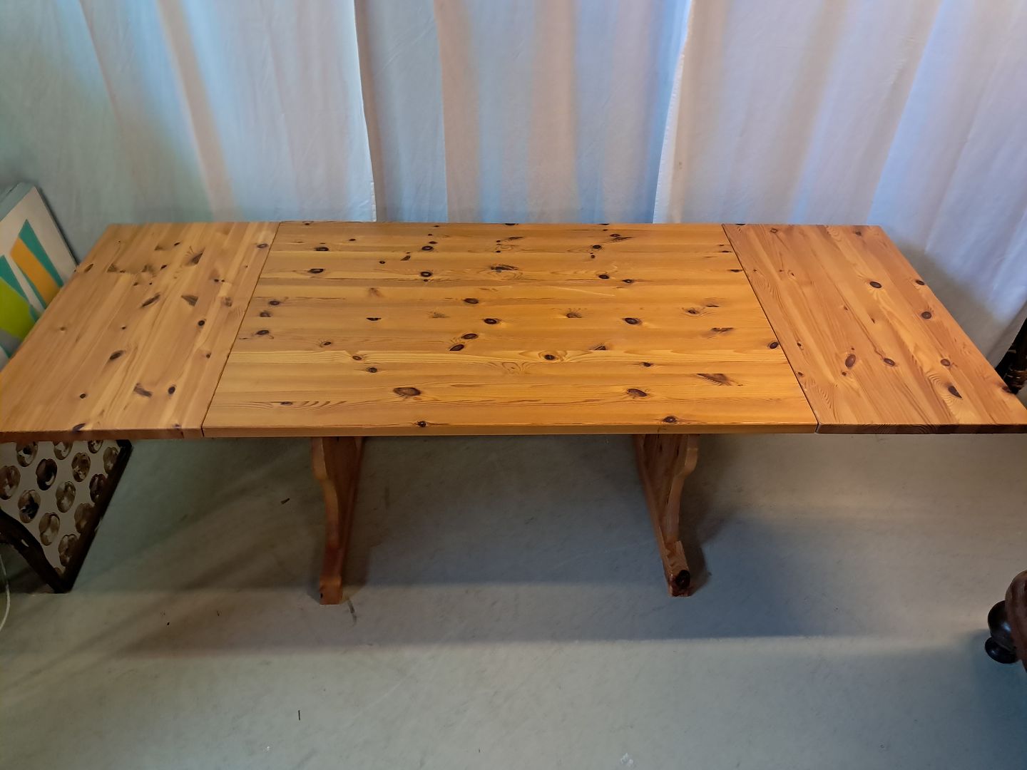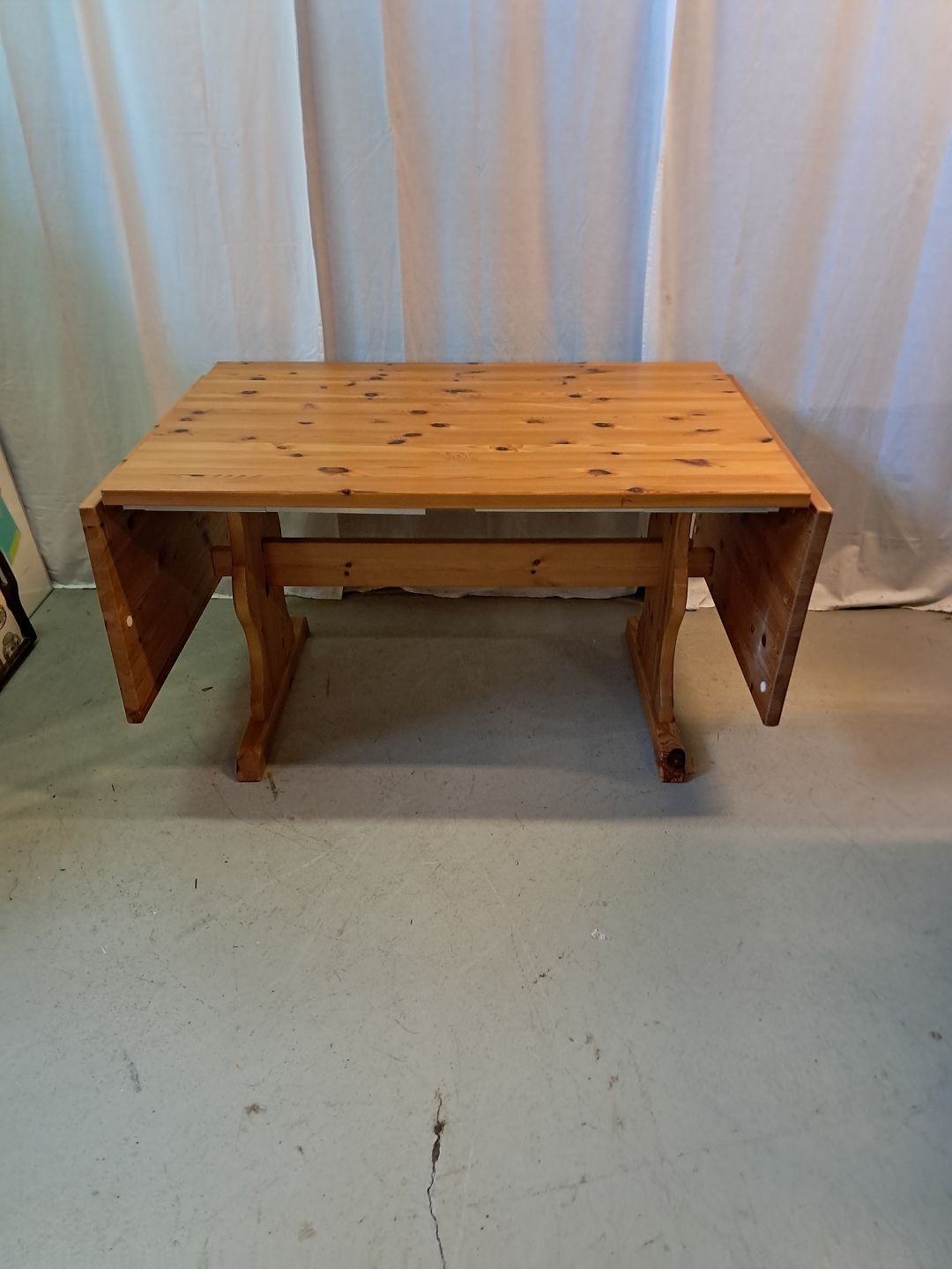 Bord i massivt fyrretræ med klapper, fra 1980erne.Det har brugsspor.