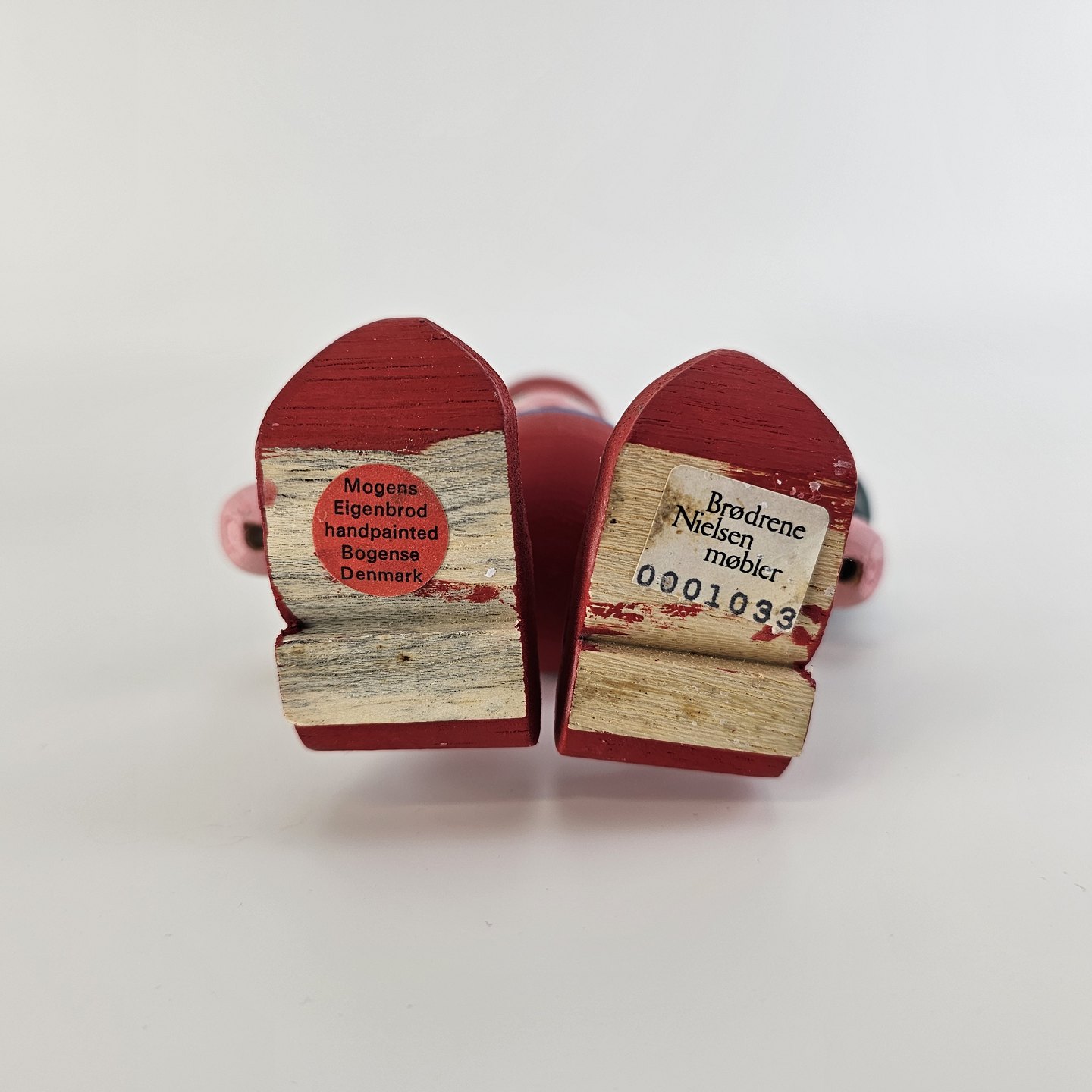 En håndmalet figur i træ med motiv af en nisse med en kerteholder Nr. 0001033