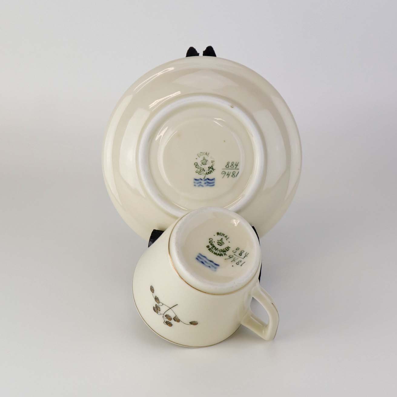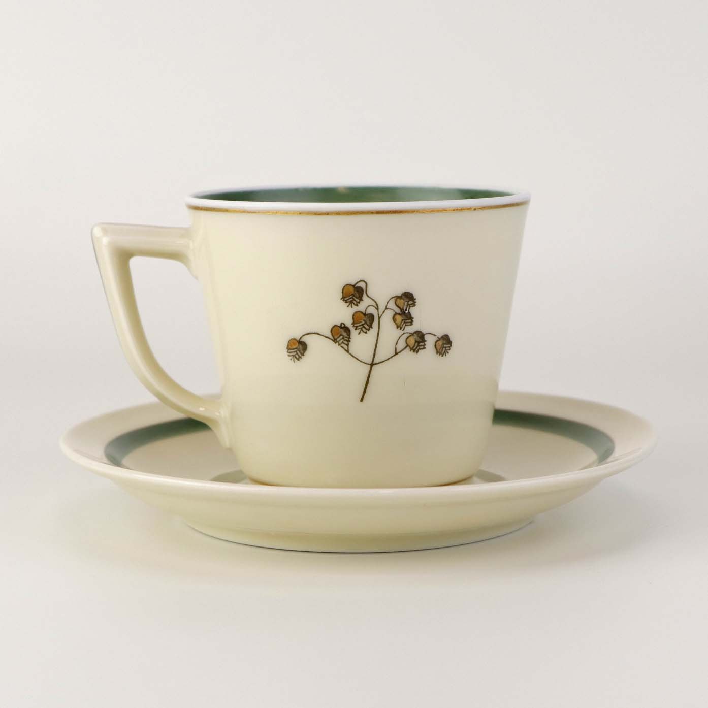 Kop med underkop i kongelig porcelæn fra stellet Hjertegræs. Nr. 884/9481Formgiver Thorkild Olsen