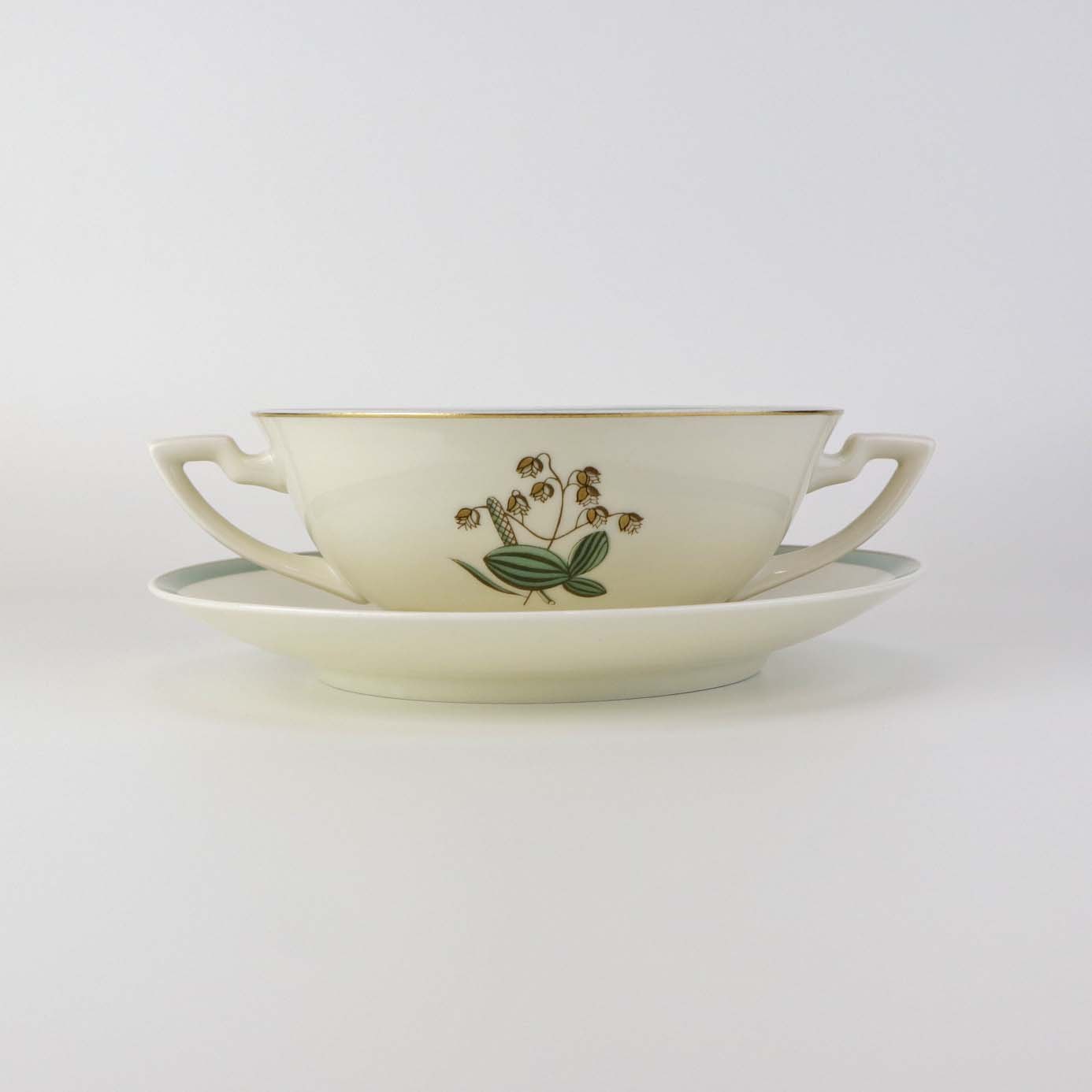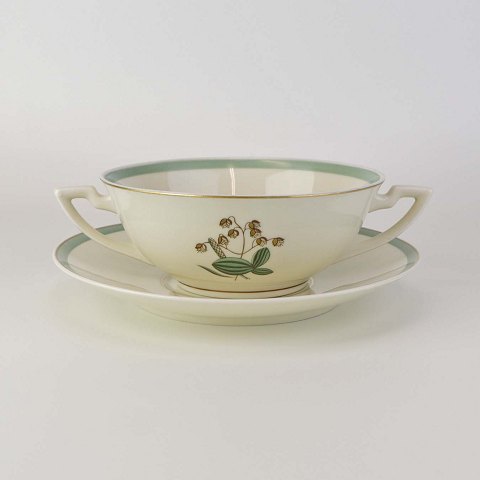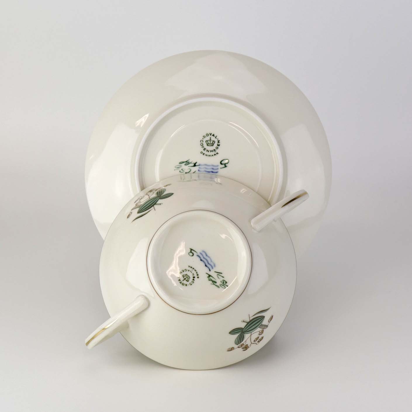 Suppekop med underkop i kongelig porcelæn fra stellet Hjertegræs. Nr. 884/9571Formgiver Thorkild Olsen