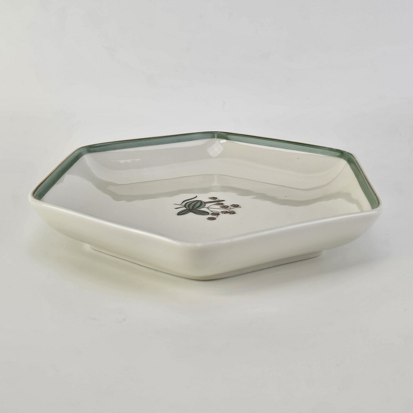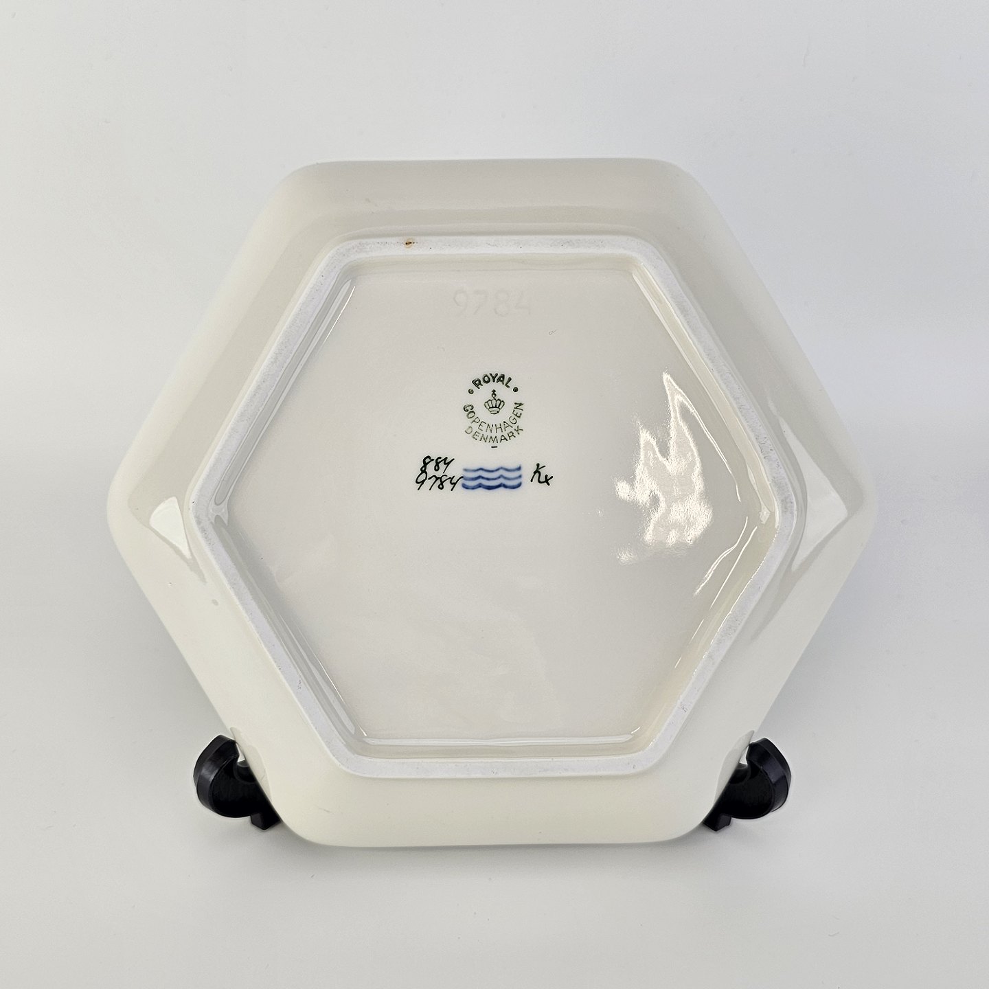 Sekskantet skål i kongelig porcelæn fra stellet Hjertegræs. Nr. 884/9794Formgiver Thorkild Olsen