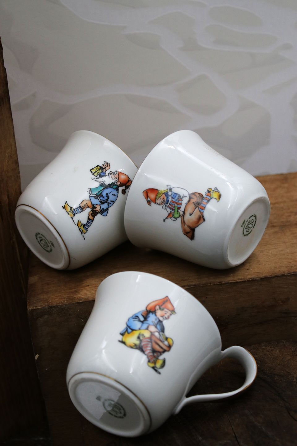 Bing & Grondahl high-handled cups with Christmas motifsand gold rim. H: 8cm. Dia.: 8.3cm.