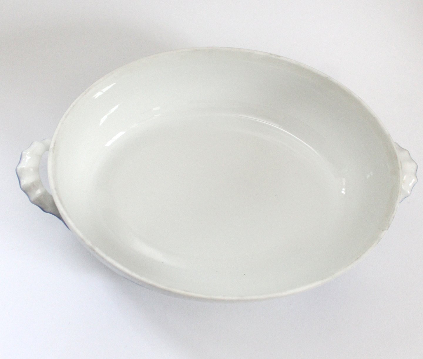 Royal Copenhagen, Blå Blomst flettet, Oval terrin med låg. Nr. 10/8172. Dateret 1945. Højde 15,5 cm. Længde 27,5 cm. Bredde 18 cm. I. sortering med sort brændingsplet på undersiden af låget. Pris: 1500 kr. stk. Lager: 1