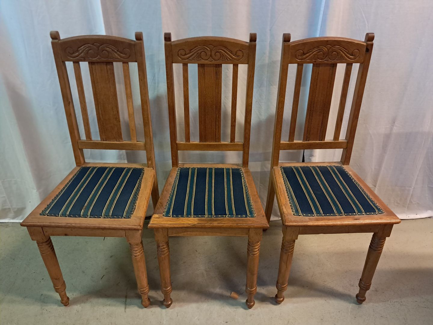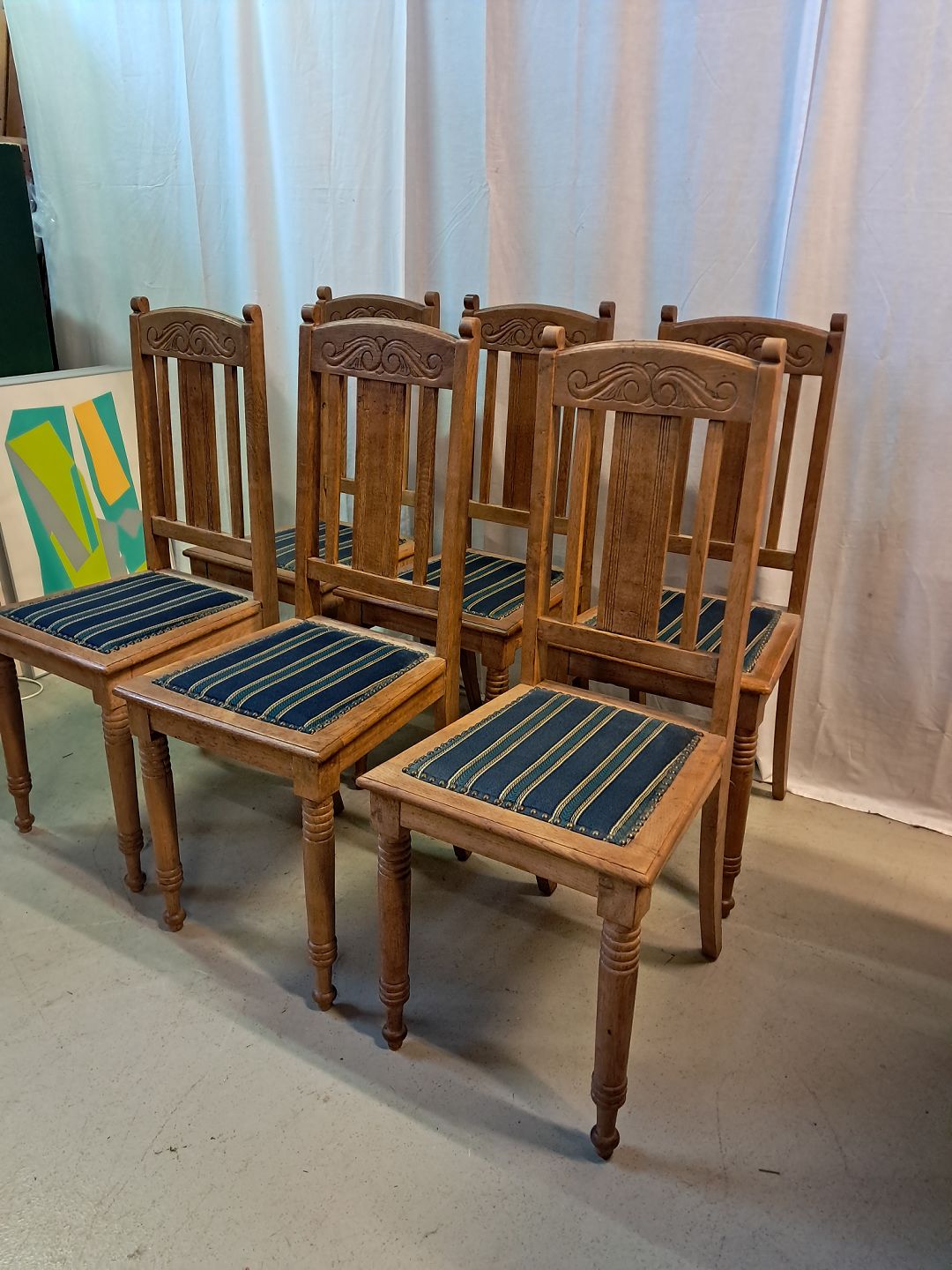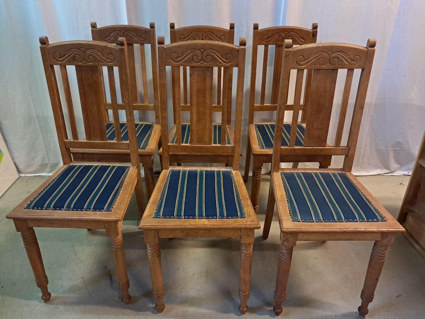 6 Stole i massivt egetræ, fra 1910erne.De har brugsspor og 2 af stolene er lidt ledløse.