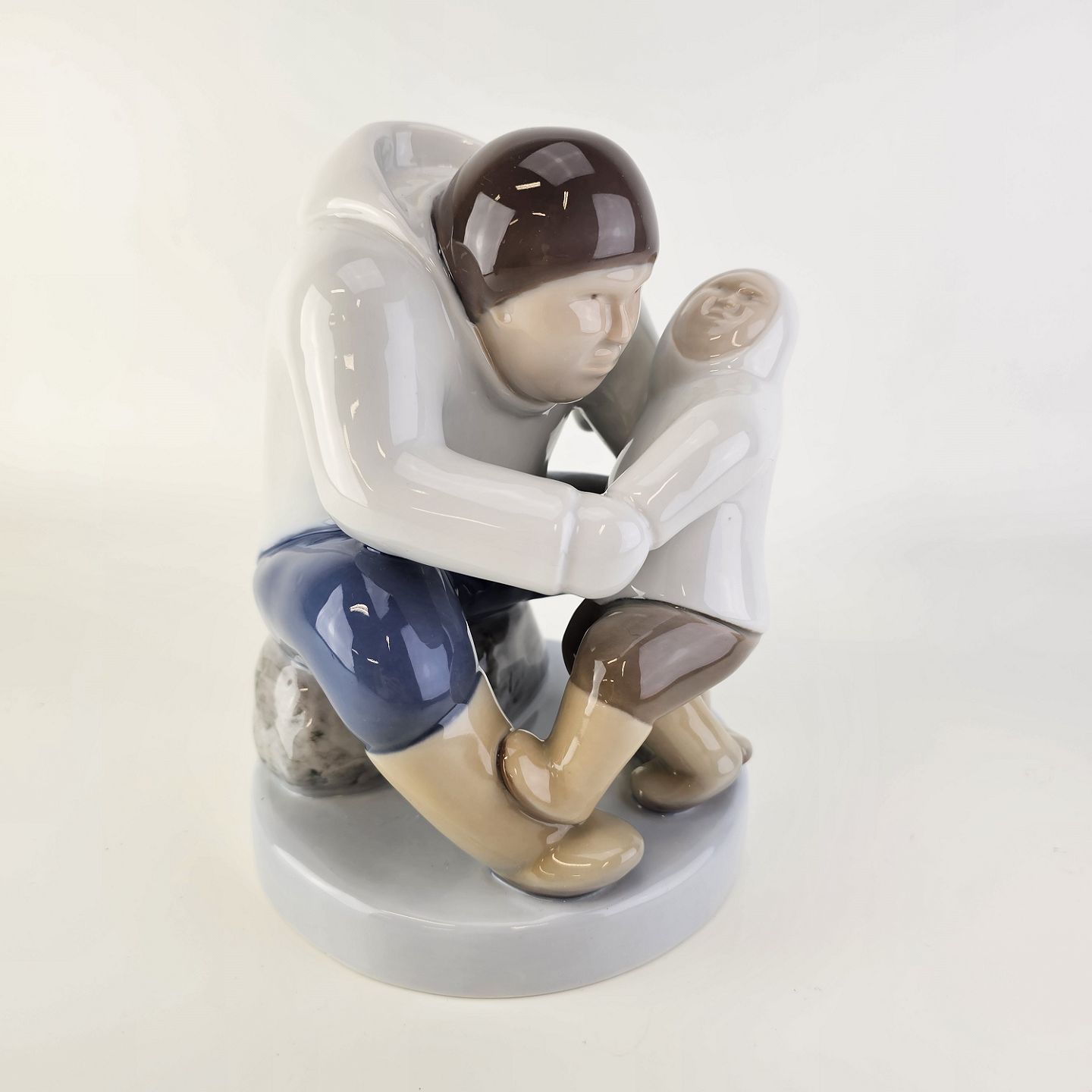 Figur i porcelæn med motiv af en grønlænder med et barn Nr. 2412