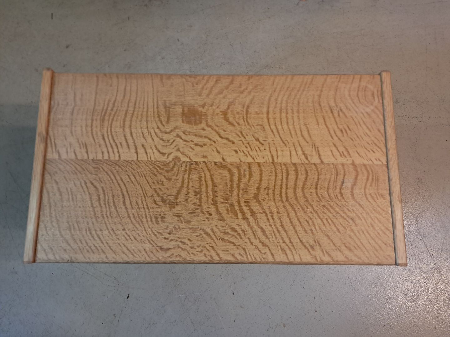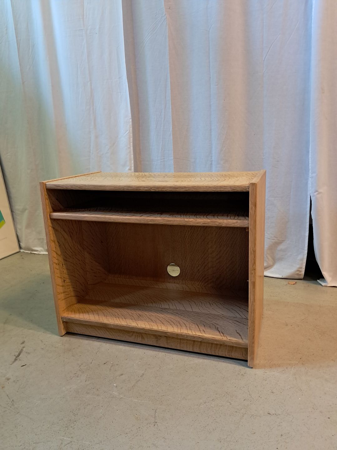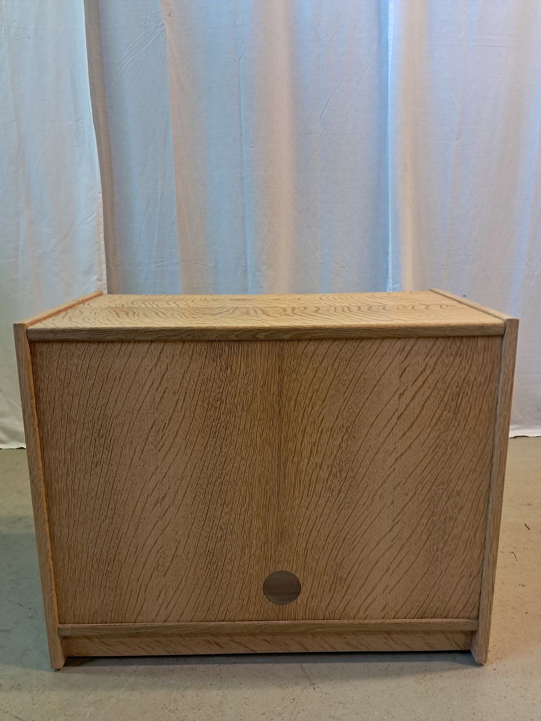 Møbel i fineret egetræ, fra 1980erne.Det har brugsspor og der er monteret hjul.