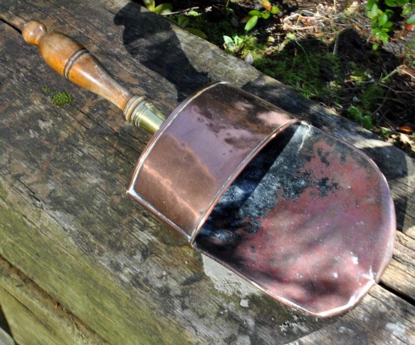 Antique coal shovel 19th century Denmark. With wooden handle mounted on brass fittings. L.: 39 cm. W.: 14.5 cm.Fantastic condition!