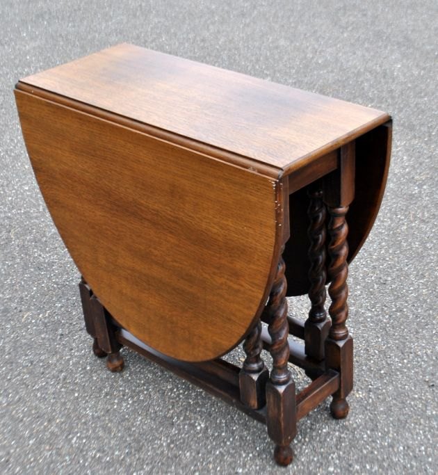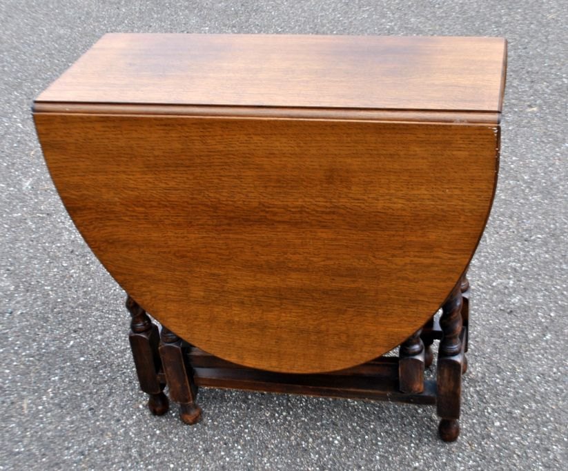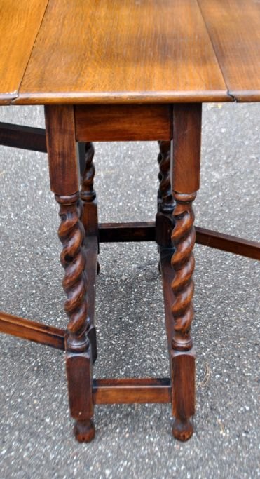 English gateleg table in oak, 19th century. With turned legs. H.: 74 cm. W.: 75.5 cm. D: 30 cm. Extended: 133 cm.Item number: 28333