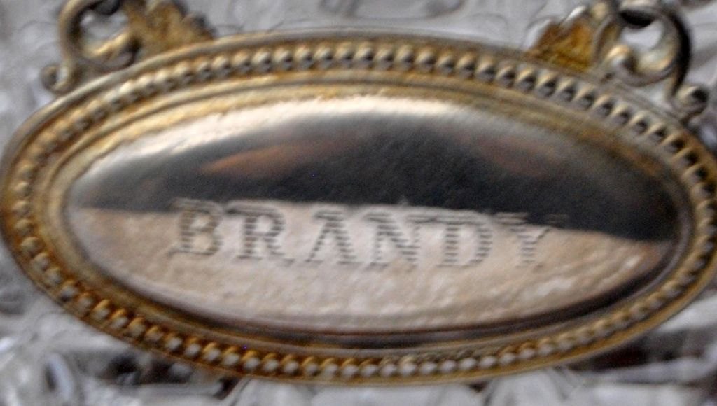 English tantalus with three crystal decanters, 19th century. Polished oak. With brass fittings and lock with key. Decanters provided with silver-plated signs for brandy, sherry and whisky. H: 31 cm. L: 35 cm.Item number: 28484