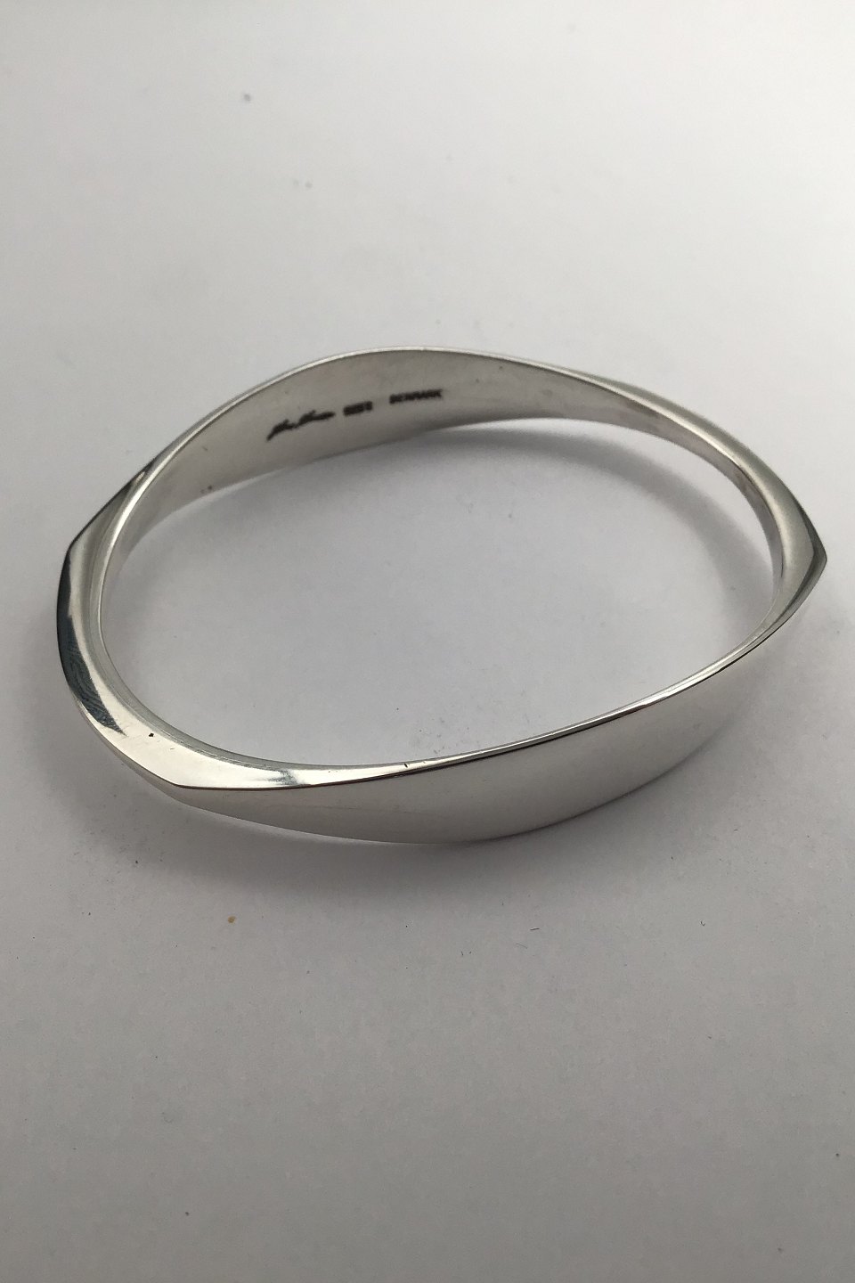 Hans Hansen Sterling Silver Modern BangleMeasures inside 5.5 cm x 6.5 cm (2.16 inch x 2.55 inch) Weight 27.68 gr (0.97 oz)