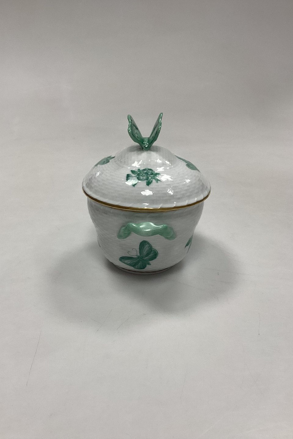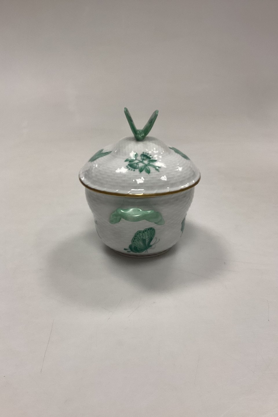 Herend Chinese Bouquet Green Lidded Bowl No. 6018/VAV. Measures 11 cm / 4.33 in. with butterfly x 13.5 cm / 5.31 in. with handle.Stock: 1