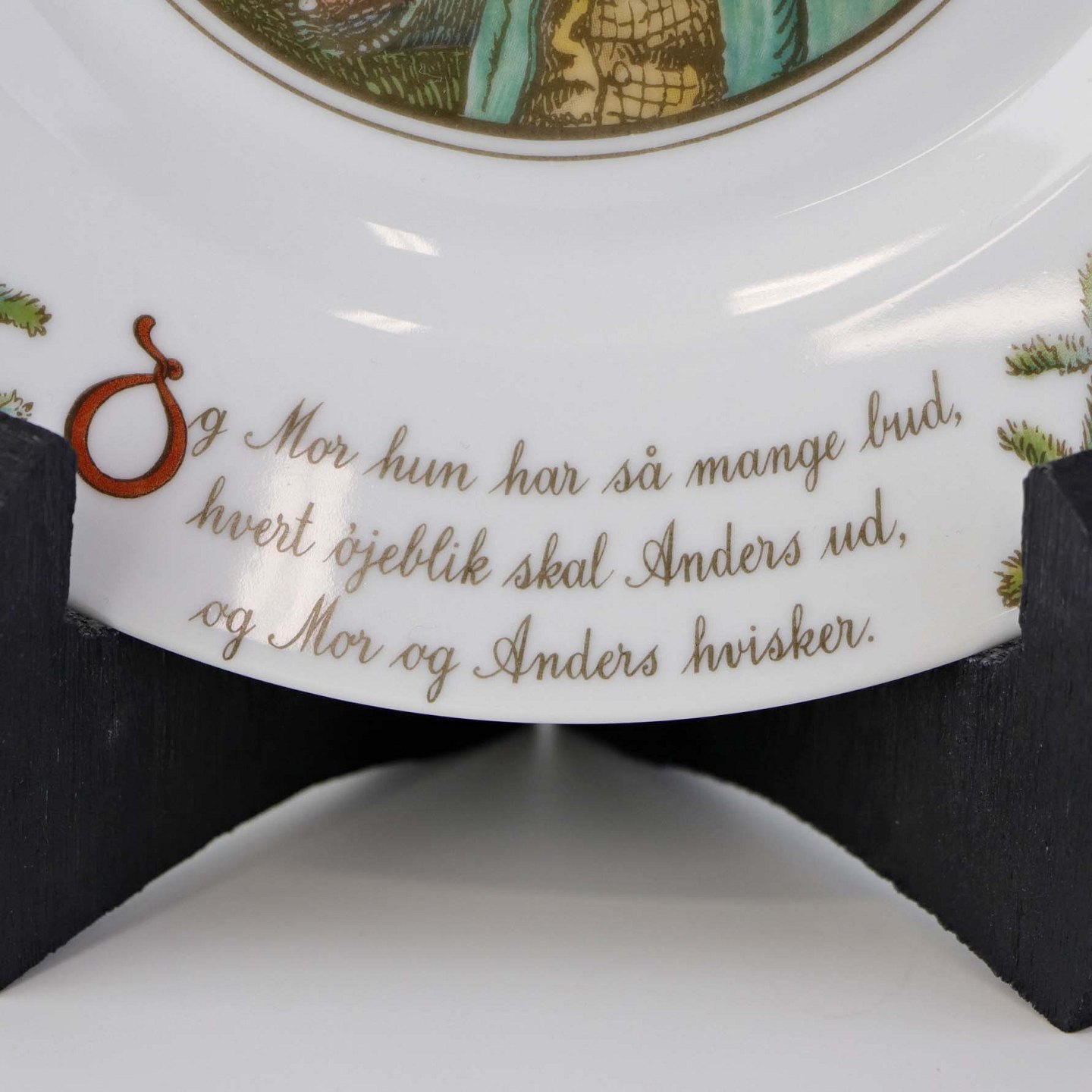 Teksten på tallerknen lyder - Og mor hun har så mange bud, hvert øjeblik skal Anders ud, og mor og Anders hvisker.