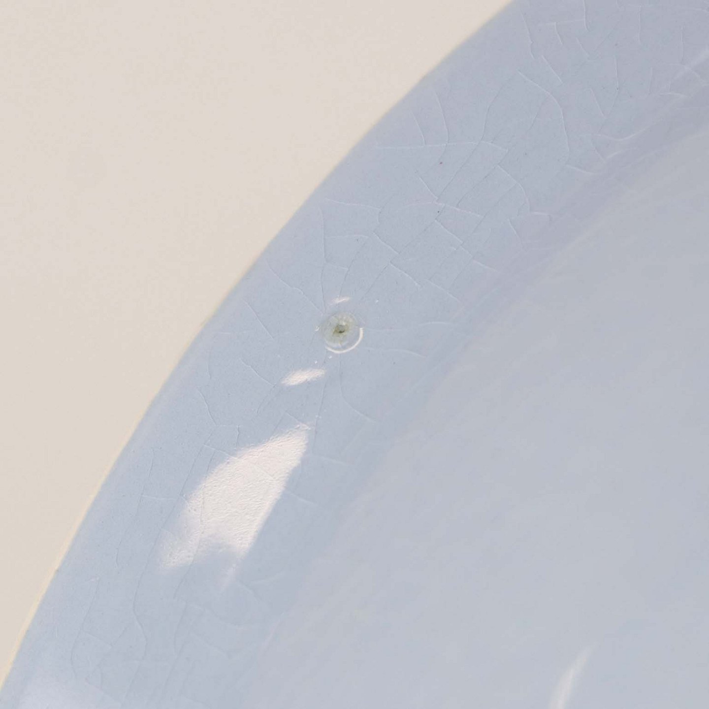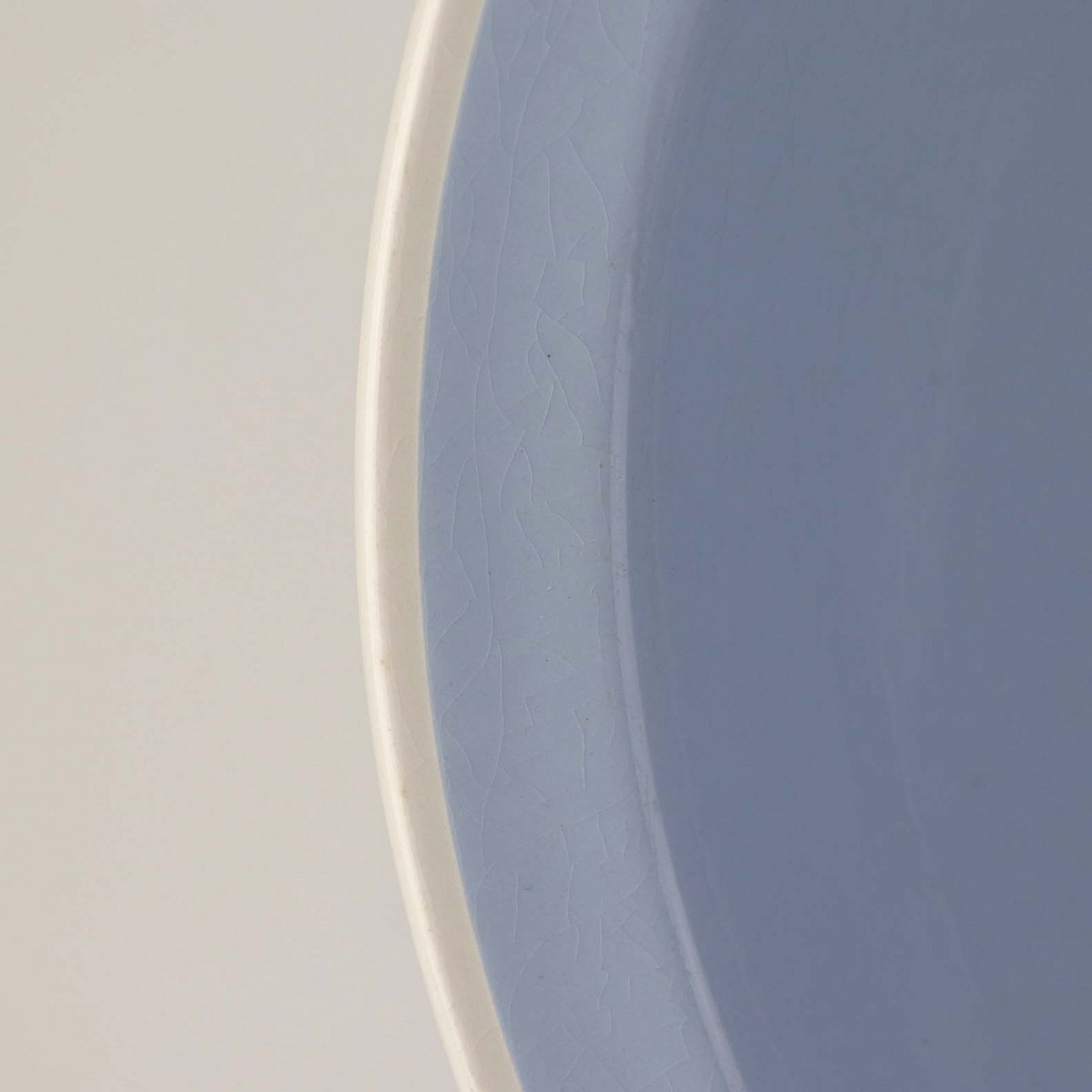 Fremstår med krakkeleringer i glasuren samt en enkel ujævnhed på bagsiden.