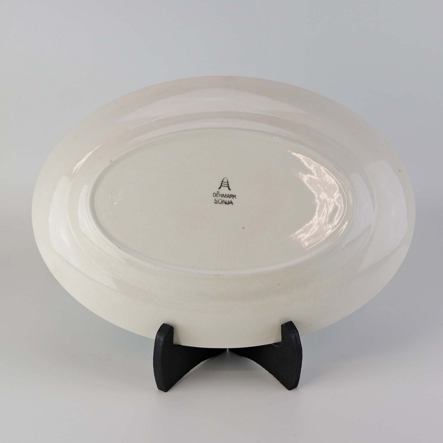 Ovalt serveringsfad i fajance fra stellet SonjaProducent Aluminia
