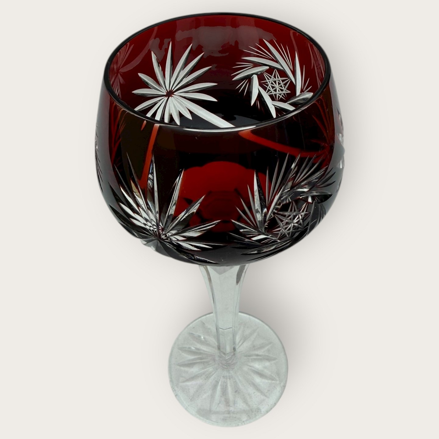 Bohemian crystal glass, Wine glass with cuts, Bordeaux, 19.5cm high, 8cm in diameter *Perfect condition*Stock: 1